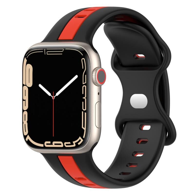 Λουράκι ρολογιού σιλικόνης δύο χρωμάτων με αγκράφα πεταλούδας για Apple Watch Series 9&8&7 41mm / SE 3&SE 2&6&SE&5&4 40mm / 3&2&1 38mm (Λευκό+Μαύρο)