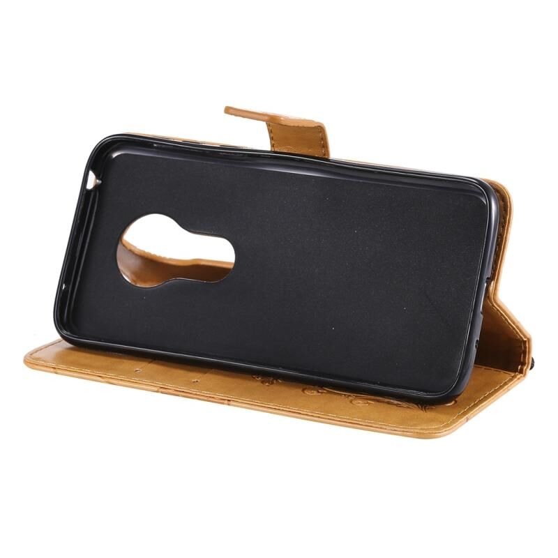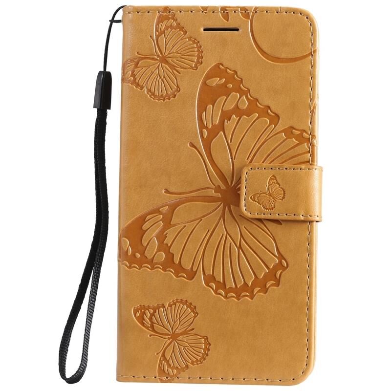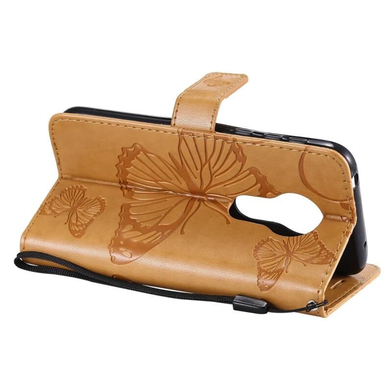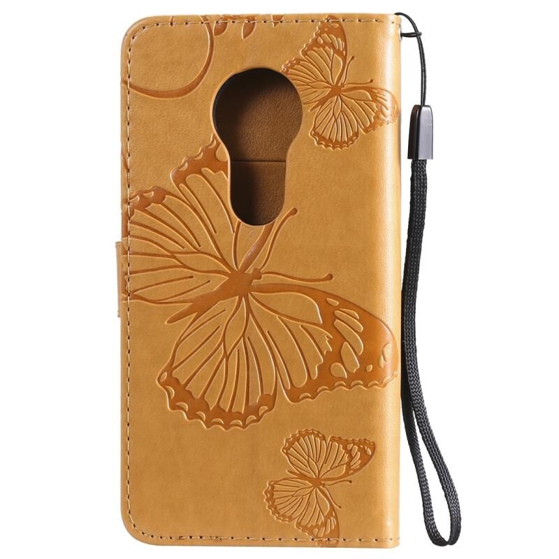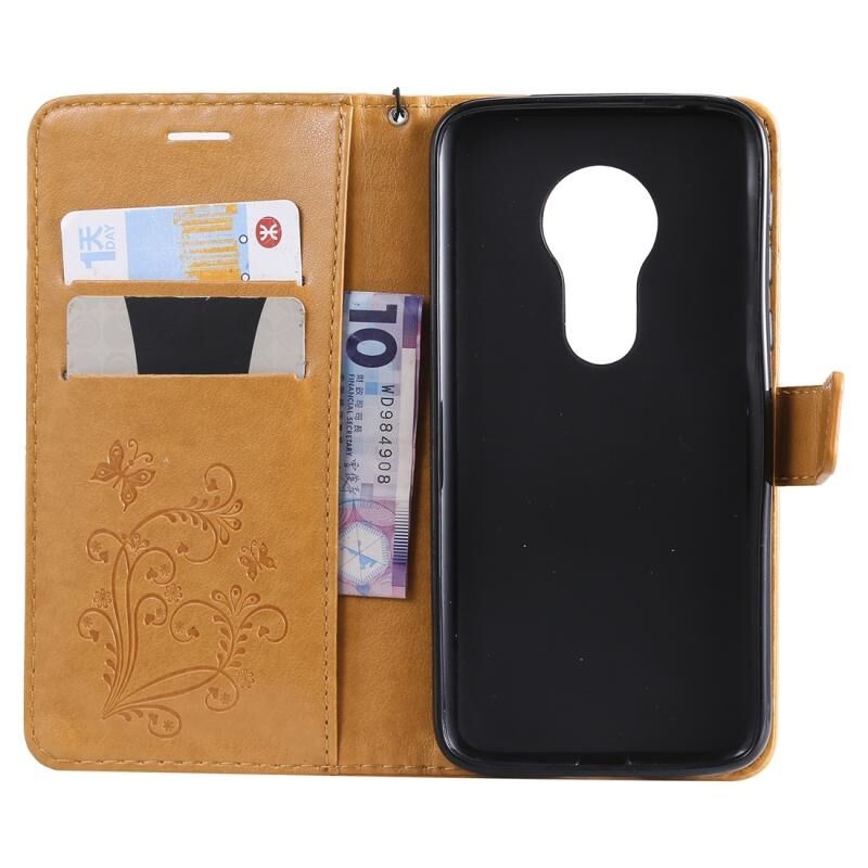 Θήκη δέρματος με οριζόντιο άνοιγμα και ανάγλυφο σχέδιο πεταλούδας για Motorola Moto G7 Play, με θήκη για κάρτες & βάση & πορτοφόλι & κορδόνι (Πορτοκαλί)