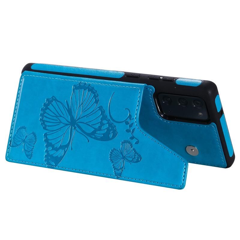 Θήκη προστασίας με ανάγλυφο σχέδιο πεταλούδας, αντικραδασμική, με βάση στήριξης, θήκες για κάρτες & κορνίζα φωτογραφίας για Samsung Galaxy Note20 (Χρυσορόδινο)