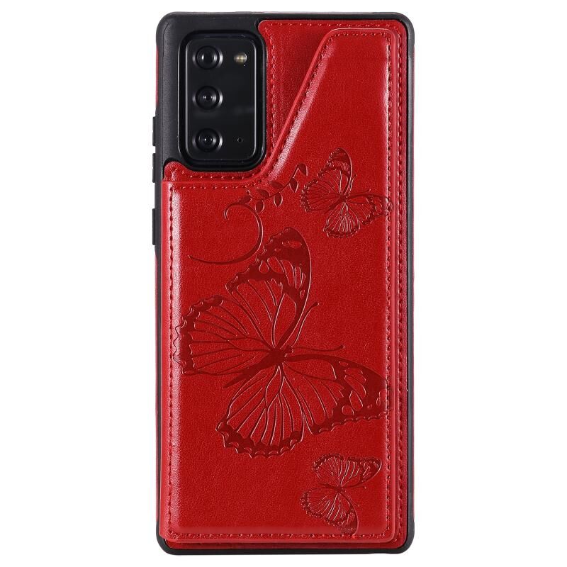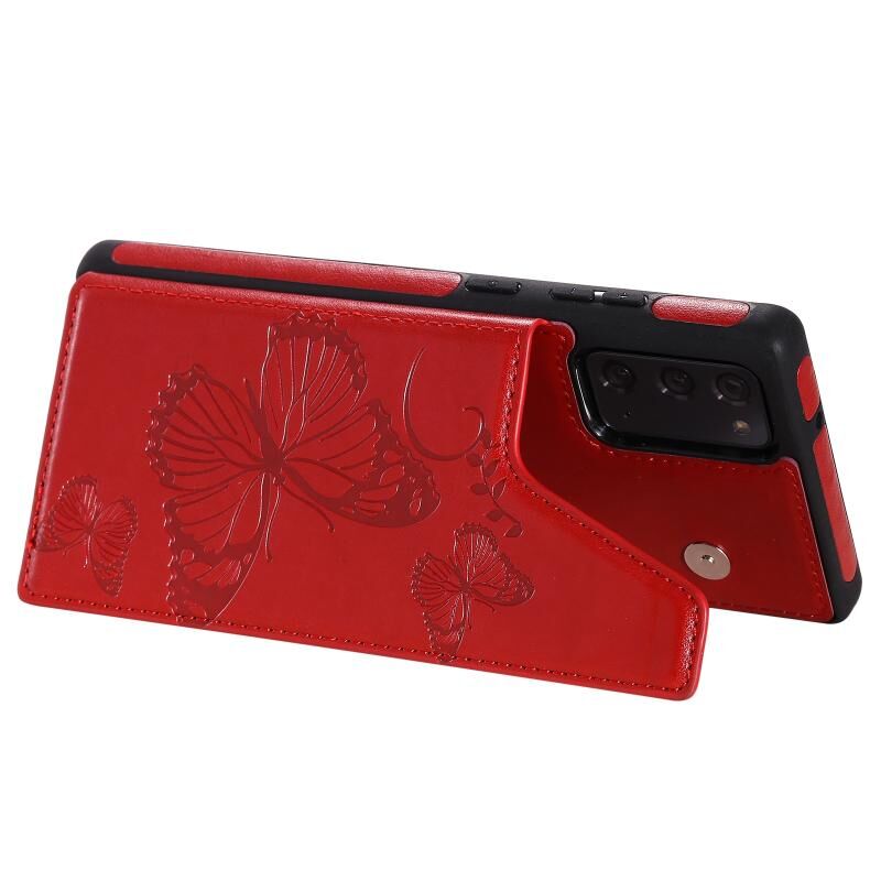 Θήκη προστασίας με ανάγλυφο σχέδιο πεταλούδας, αντικραδασμική, με βάση στήριξης, θήκες για κάρτες & κορνίζα φωτογραφίας για Samsung Galaxy Note20 (Χρυσορόδινο)