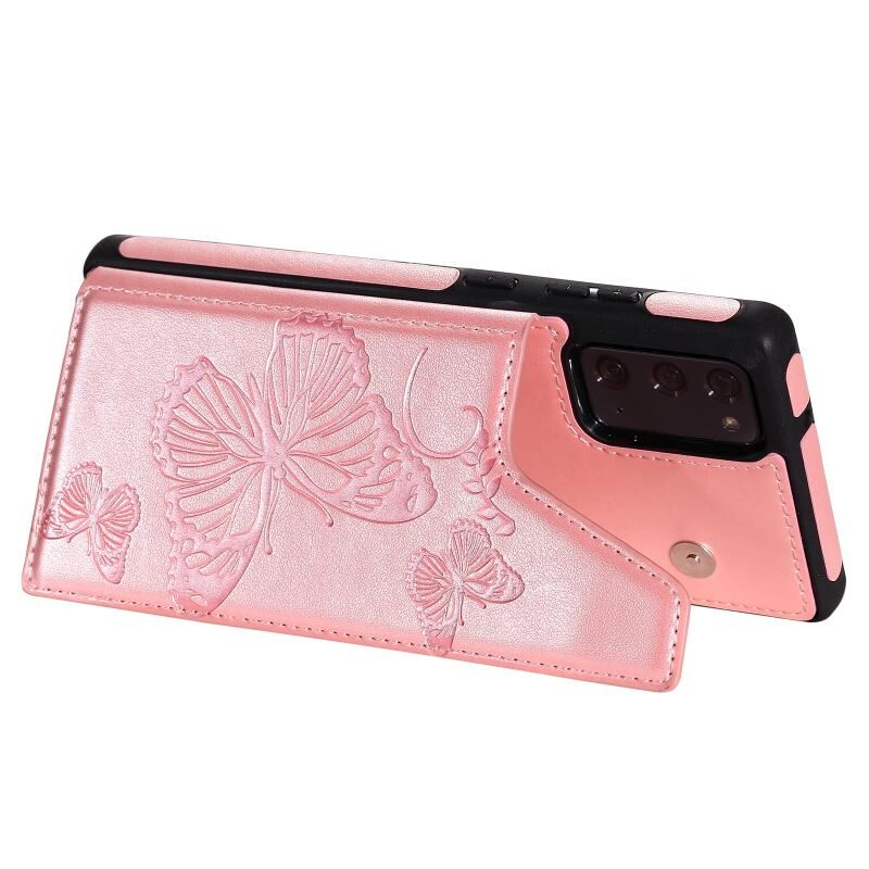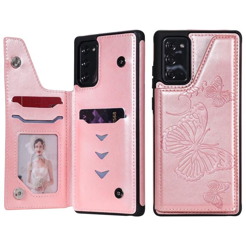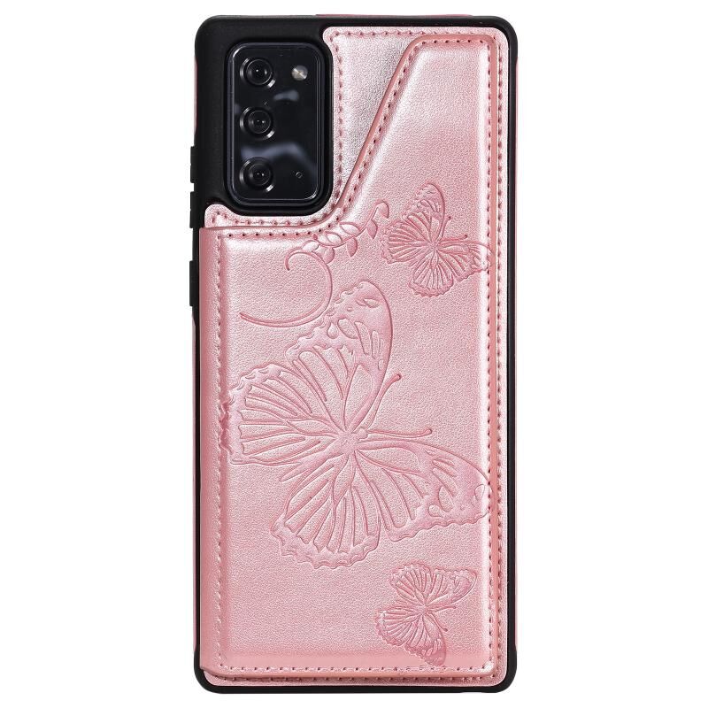 Θήκη προστασίας με ανάγλυφο σχέδιο πεταλούδας, αντικραδασμική, με βάση στήριξης, θήκες για κάρτες & κορνίζα φωτογραφίας για Samsung Galaxy Note20 (Χρυσορόδινο)