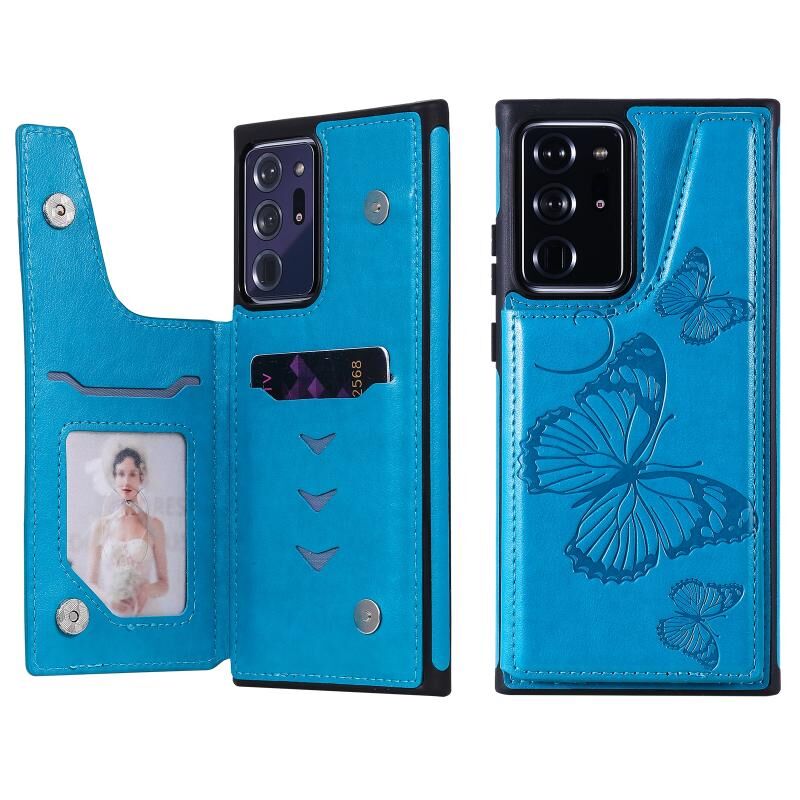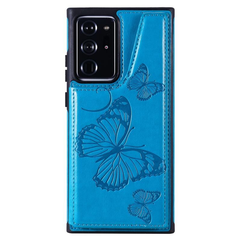 Θήκη προστασίας με ανάγλυφο σχέδιο πεταλούδας, αντικραδασμική, με βάση στήριξης, θήκες για κάρτες & κορνίζα φωτογραφίας για Samsung Galaxy Note20 Ultra (Χρυσορόδινο)