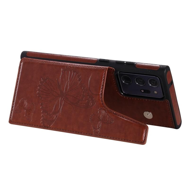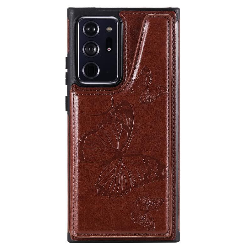 Θήκη προστασίας με ανάγλυφο σχέδιο πεταλούδας, αντικραδασμική, με βάση στήριξης, θήκες για κάρτες & κορνίζα φωτογραφίας για Samsung Galaxy Note20 Ultra (Χρυσορόδινο)