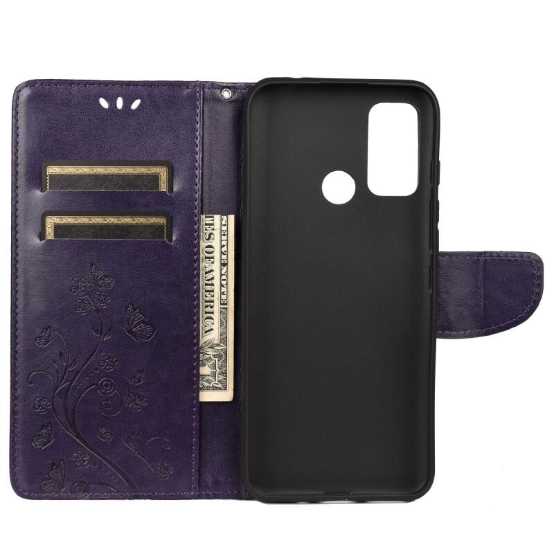 Θήκη δέρματος οριζόντιας αναδίπλωσης με σχέδιο πεταλούδας, θήκη & υποδοχές καρτών & πορτοφόλι για Wiko Power U30 (Γκρι)
