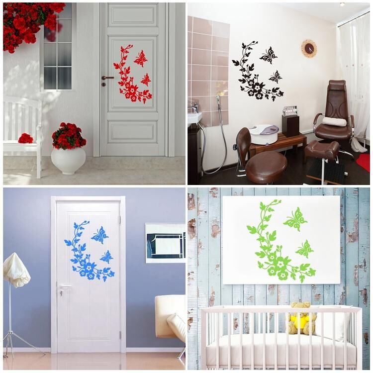 Αυτοκόλλητα Τοίχου για Μπάνιο με σχέδιο Πεταλούδας, Λουλουδιού και Κλήματος - Διακοσμητικό Ταπετσαρία για Τουαλέτα (Πράσινο)