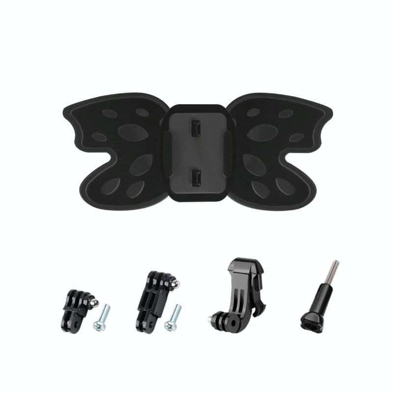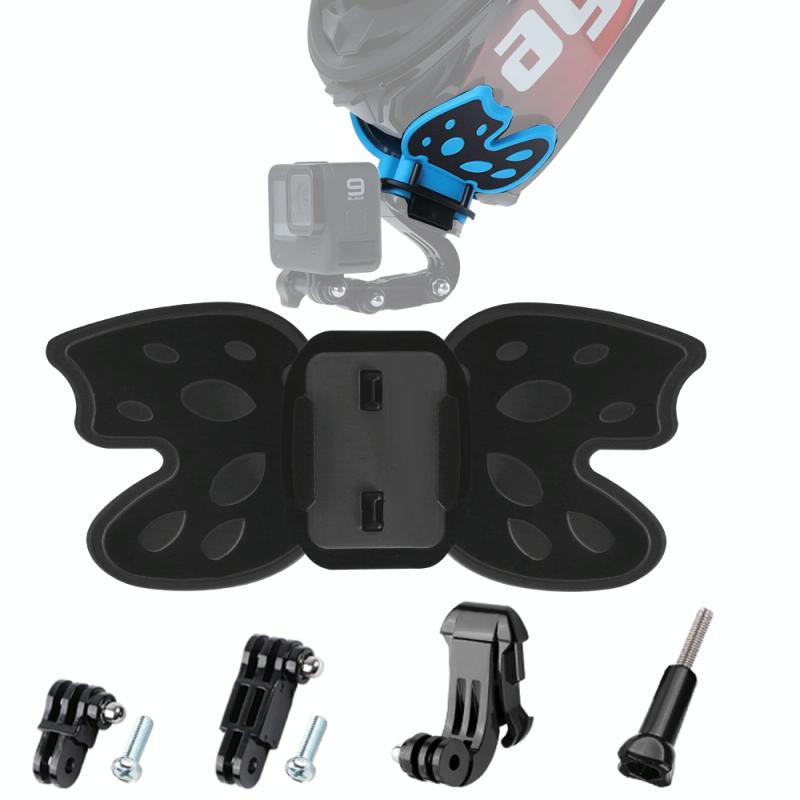 Butterfly Helmet Mount Adapter with 3-Way Pivot Arm & J-Hook Buckle & Long Screw for GoPro, Insta360, DJI and Other Action Cameras (Black)