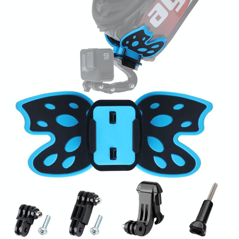 Butterfly Helmet Mount Adapter with 3-Way Pivot Arm & J-Hook Buckle & Long Screw for GoPro, Insta360, DJI and Other Action Cameras (Blue)