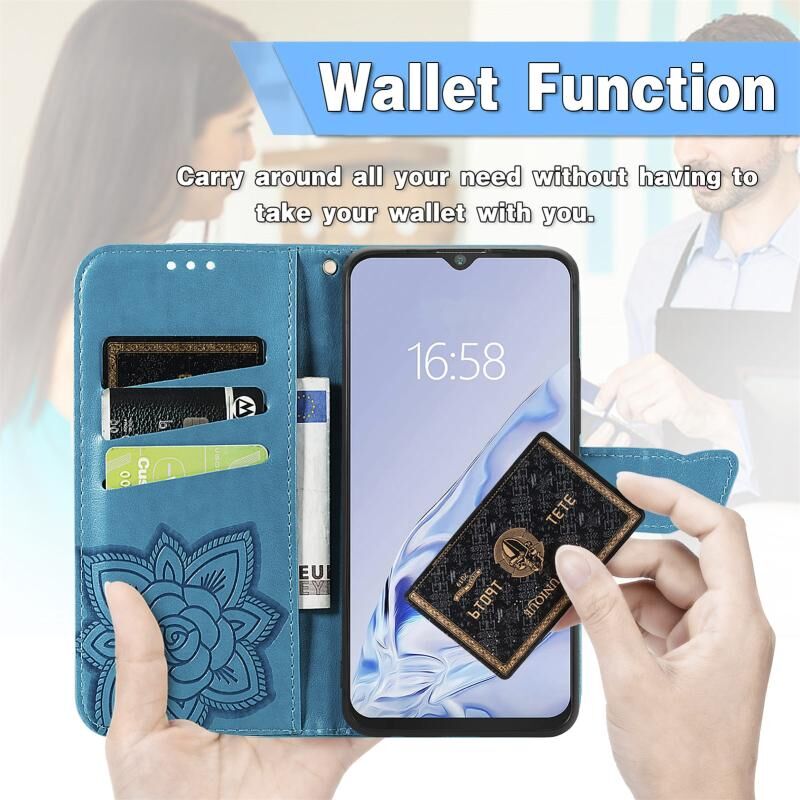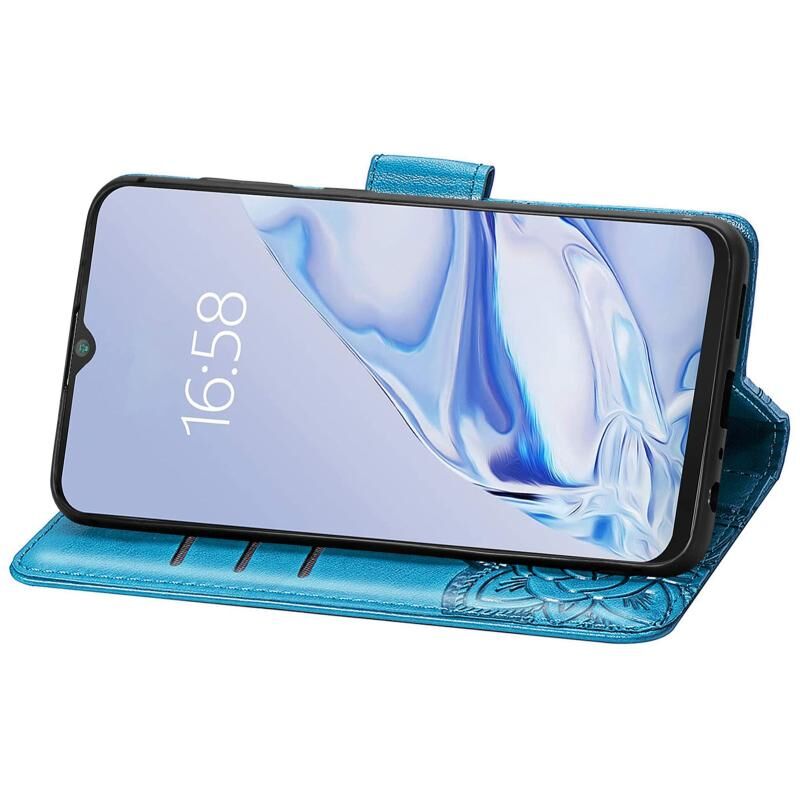 Θήκη δέρματος οριζόντιας αναδίπλωσης με σχέδιο πεταλούδας, λουλούδια, ανάγλυφο, με βάση & υποδοχές καρτών & πορτοφόλι & λουρί για CUBOT Note 20 (Μαύρο)