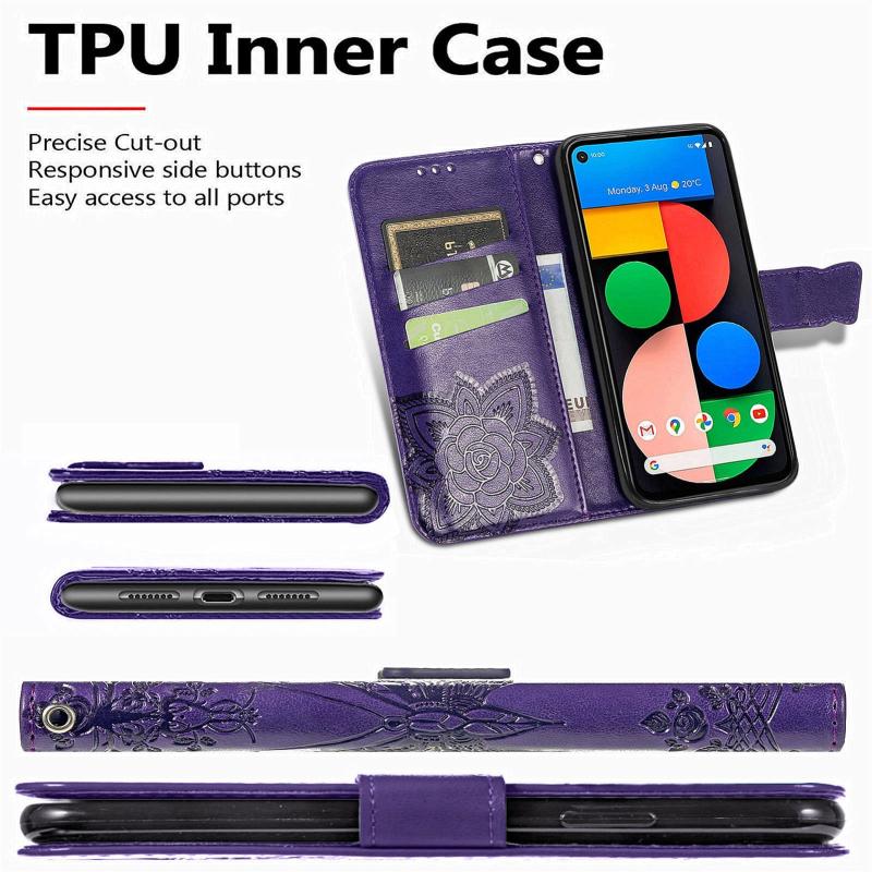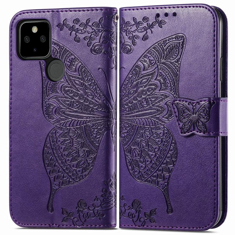 Butterfly Love Flowers Embossed Horizontal Flip Leather Case with Holder & Card Slots & Wallet & Lanyard For Google Pixel 5A 5G(Dark Purple)