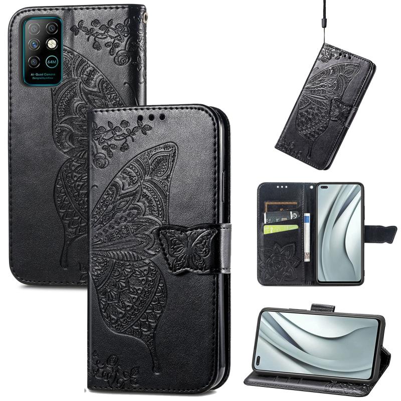 Butterfly Love Flowers Embossed Horizontal Flip Leather Case with Holder & Card Slots & Wallet & Lanyard For Infinix Note 8(Black)