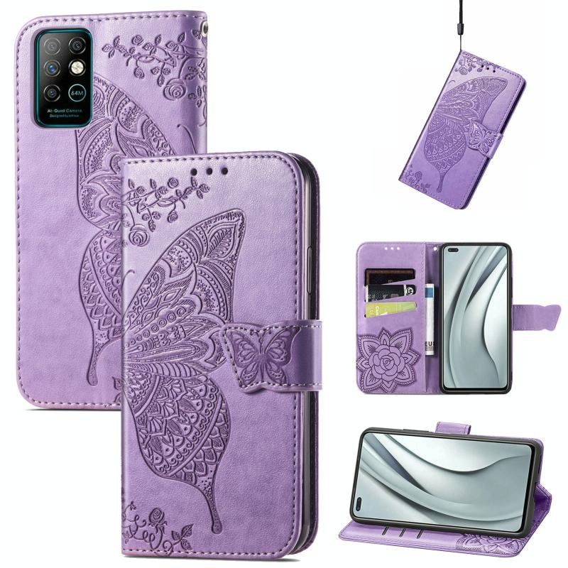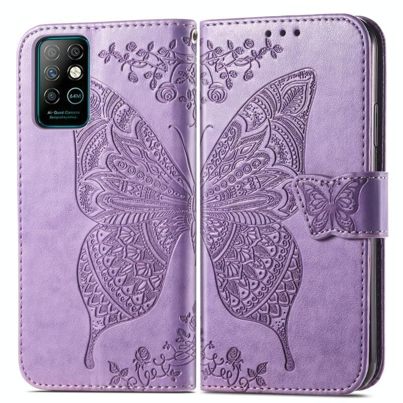 Butterfly Love Flowers Embossed Horizontal Flip Leather Case with Holder & Card Slots & Wallet & Lanyard For Infinix Note 8(Light Purple)