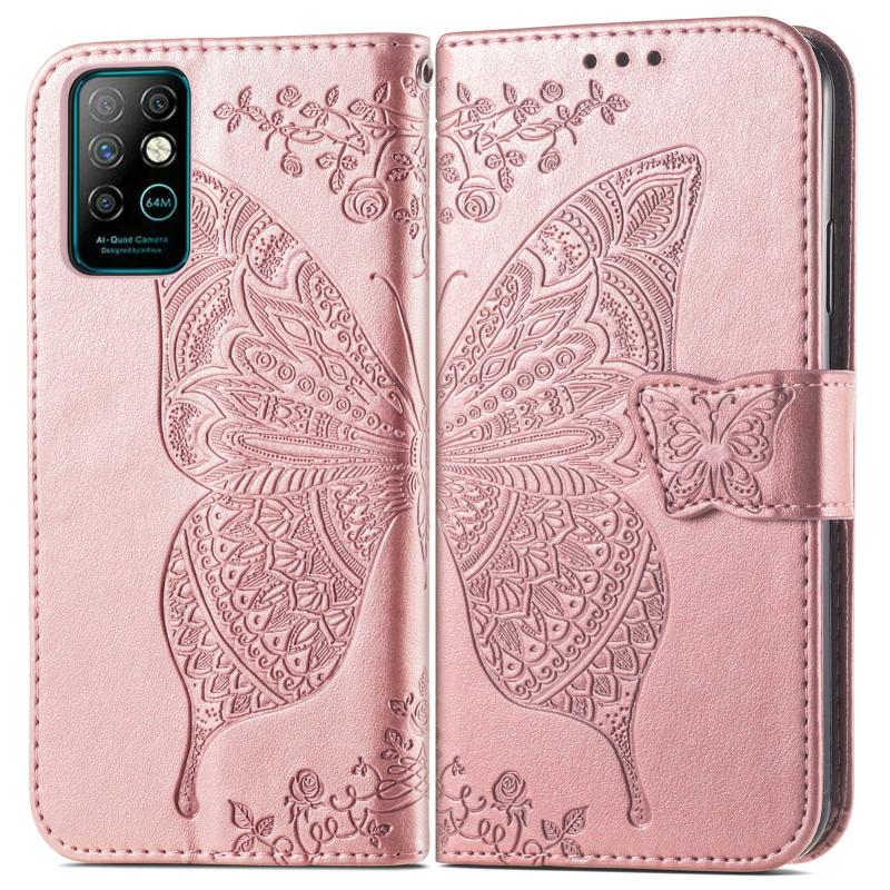 Butterfly Love Flowers Embossed Horizontal Flip Leather Case with Holder & Card Slots & Wallet & Lanyard For Infinix Note 8(Rose Gold)