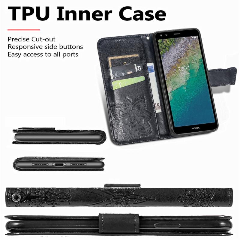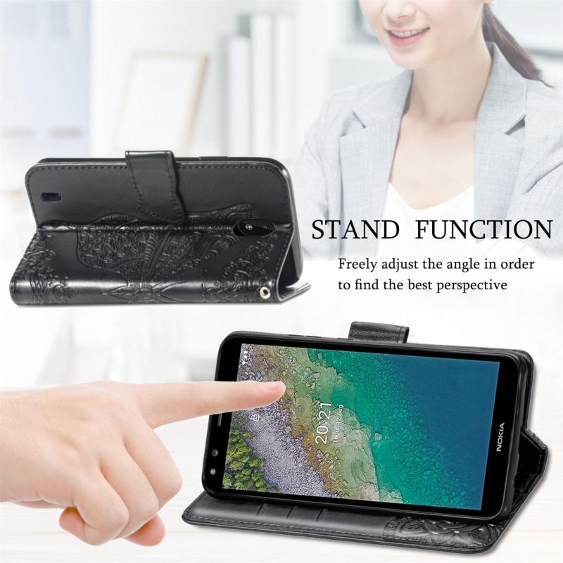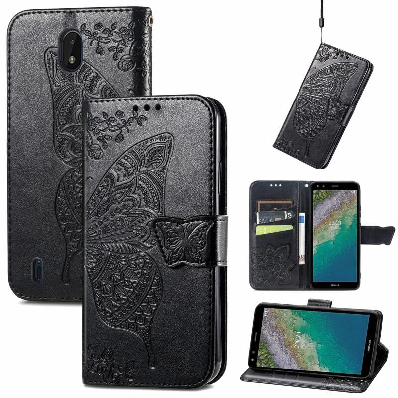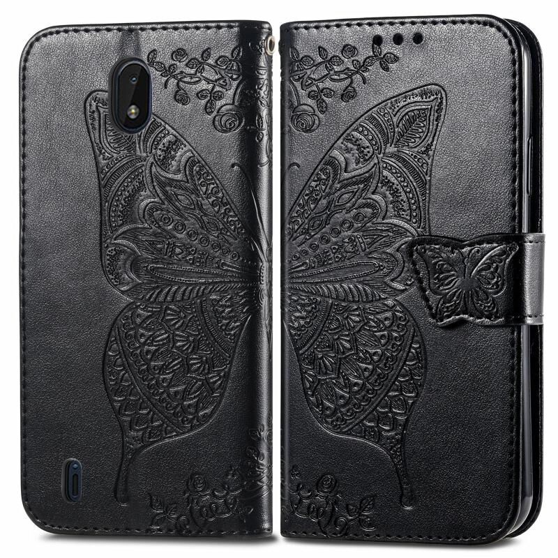 Butterfly Love Flowers Embossed Horizontal Flip Leather Case with Holder & Card Slots & Wallet & Lanyard For Nokia C01 Plus(Black)