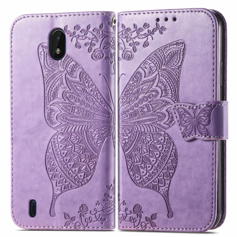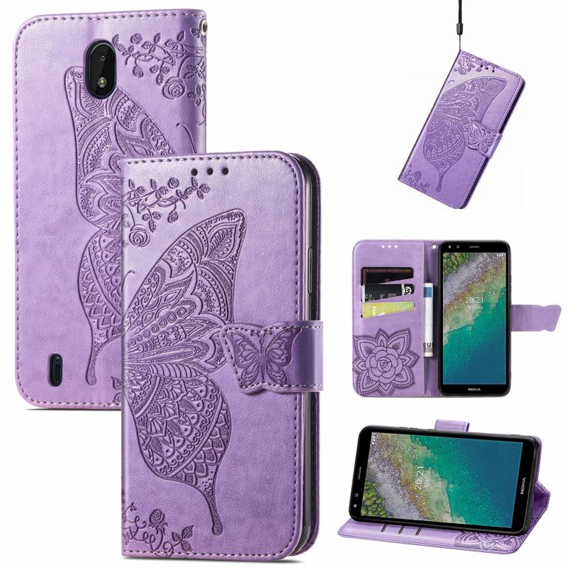 Butterfly Love Flowers Embossed Horizontal Flip Leather Case with Holder & Card Slots & Wallet & Lanyard For Nokia C01 Plus(Light Purple)