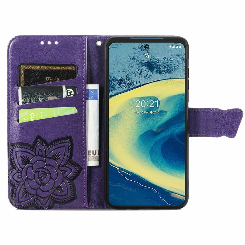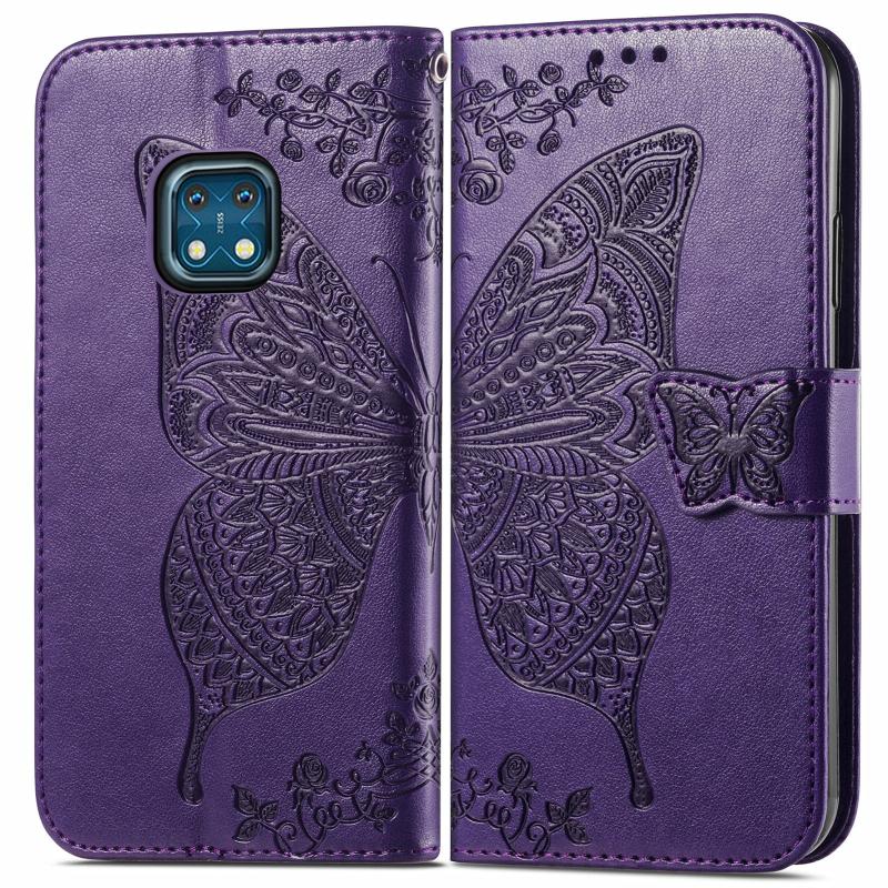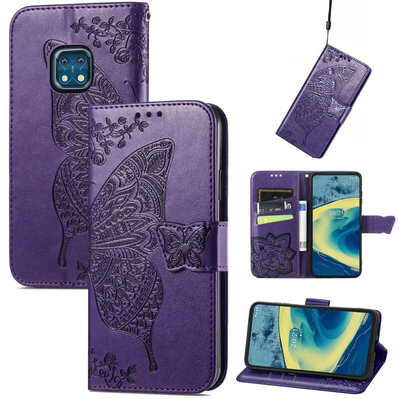 Butterfly Love Flowers Embossed Horizontal Flip Leather Case with Holder & Card Slots & Wallet & Lanyard For Nokia XR20(Dark Purple)