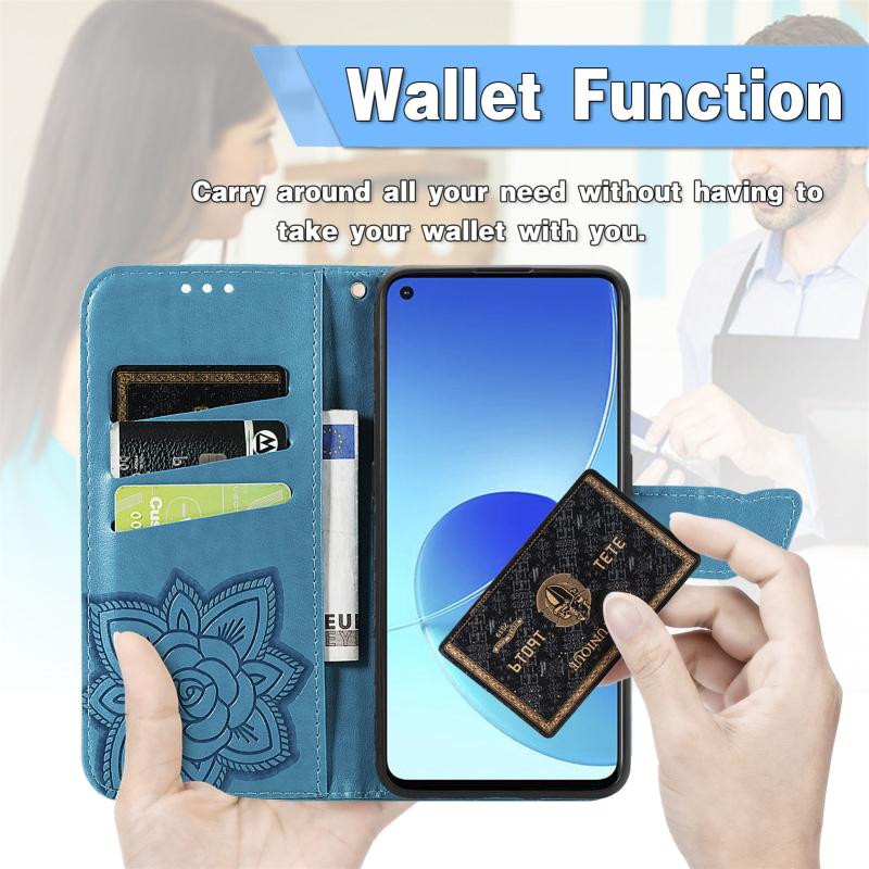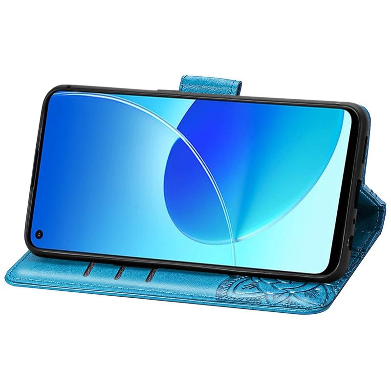 Butterfly Love Flowers Embossed Horizontal Flip Leather Case with Holder & Card Slots & Wallet & Lanyard For OPPO Reno 6Z(Blue)