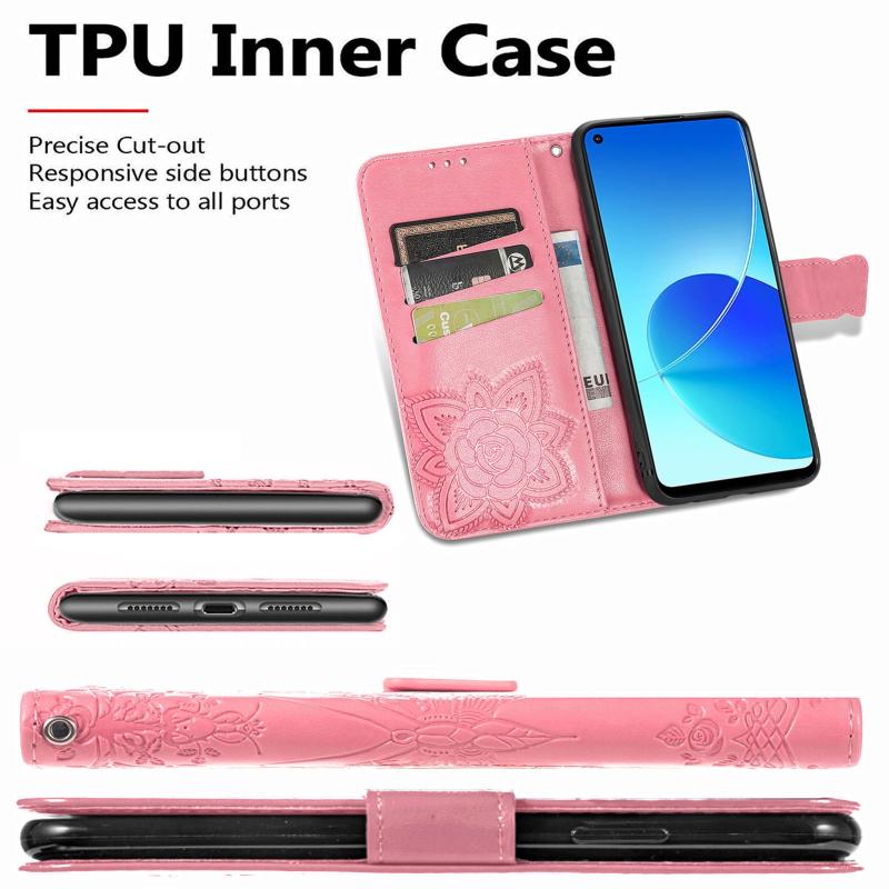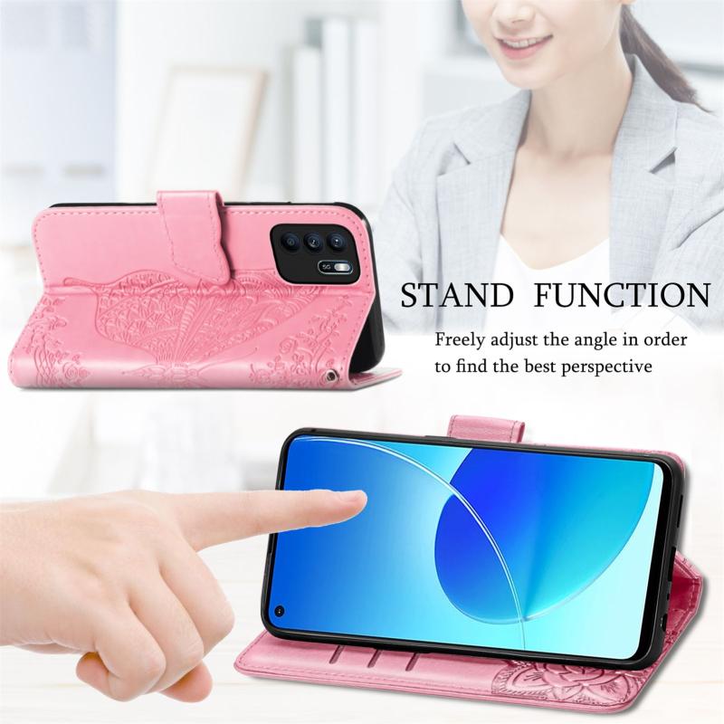 Butterfly Love Flowers Embossed Horizontal Flip Leather Case with Holder & Card Slots & Wallet & Lanyard For OPPO Reno 6Z(Pink)