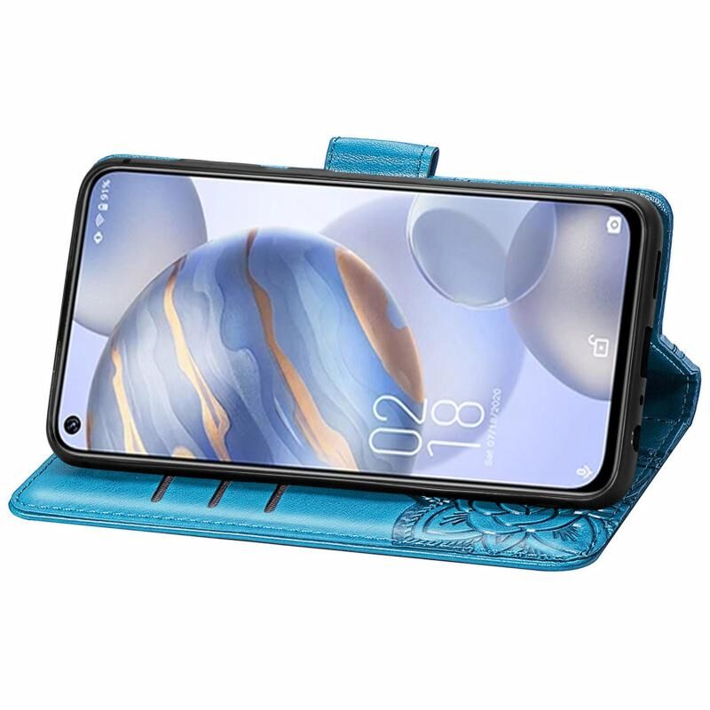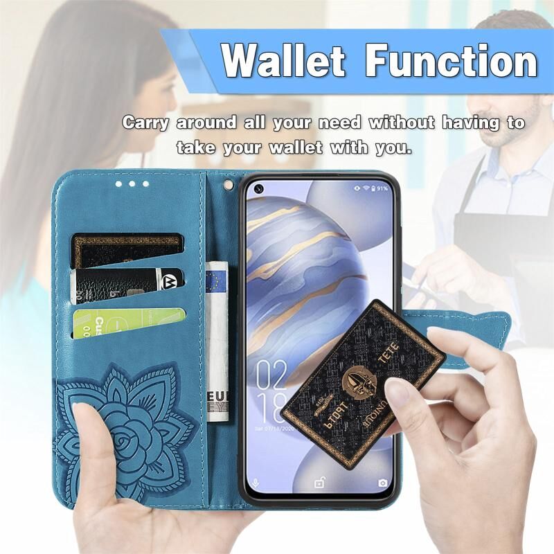 Θήκη δέρματος οριζόντιας αναδίπλωσης με σχέδιο πεταλούδας, λουλούδια, ανάγλυφο, με βάση & υποδοχές καρτών & πορτοφόλι & λουρί για Oukitel C21 (Μαύρο)
