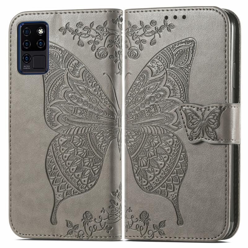 Θήκη δέρματος οριζόντιας αναδίπλωσης με σχέδιο πεταλούδας, λουλούδια, ανάγλυφο, με βάση & υποδοχές καρτών & πορτοφόλι & λουρί για Oukitel C21 (Μαύρο)