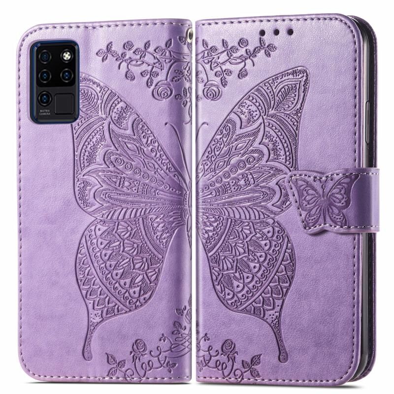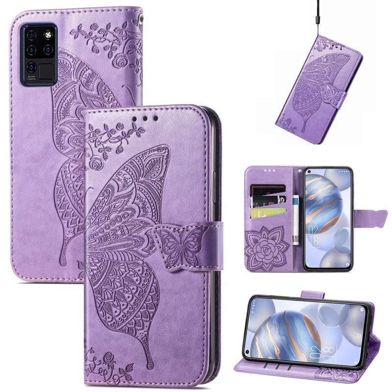 Θήκη δέρματος οριζόντιας αναδίπλωσης με σχέδιο πεταλούδας, λουλούδια, ανάγλυφο, με βάση & υποδοχές καρτών & πορτοφόλι & λουρί για Oukitel C21 (Μαύρο)