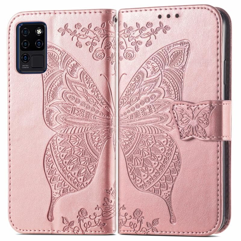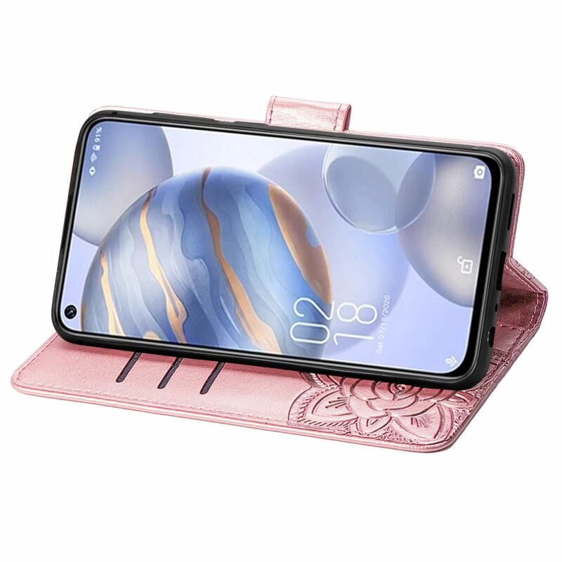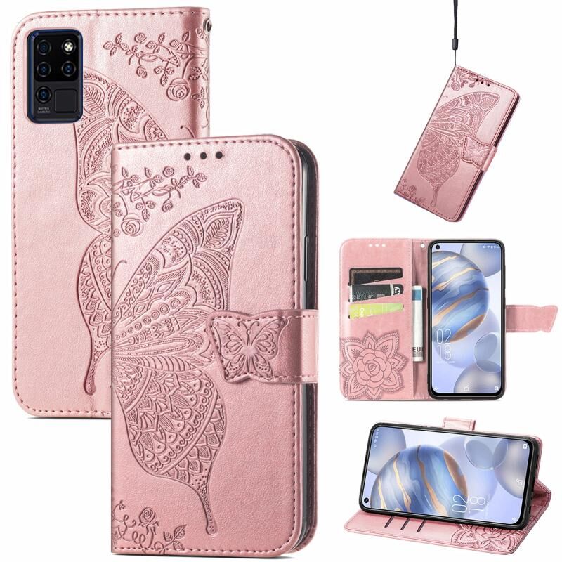 Θήκη δέρματος οριζόντιας αναδίπλωσης με σχέδιο πεταλούδας, λουλούδια, ανάγλυφο, με βάση & υποδοχές καρτών & πορτοφόλι & λουρί για Oukitel C21 (Μαύρο)