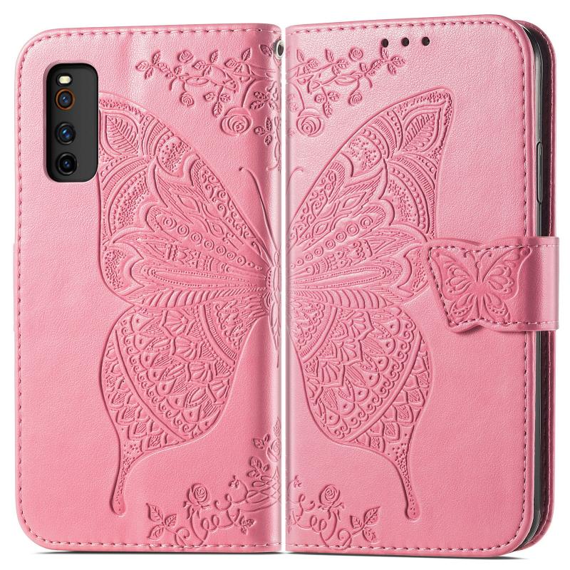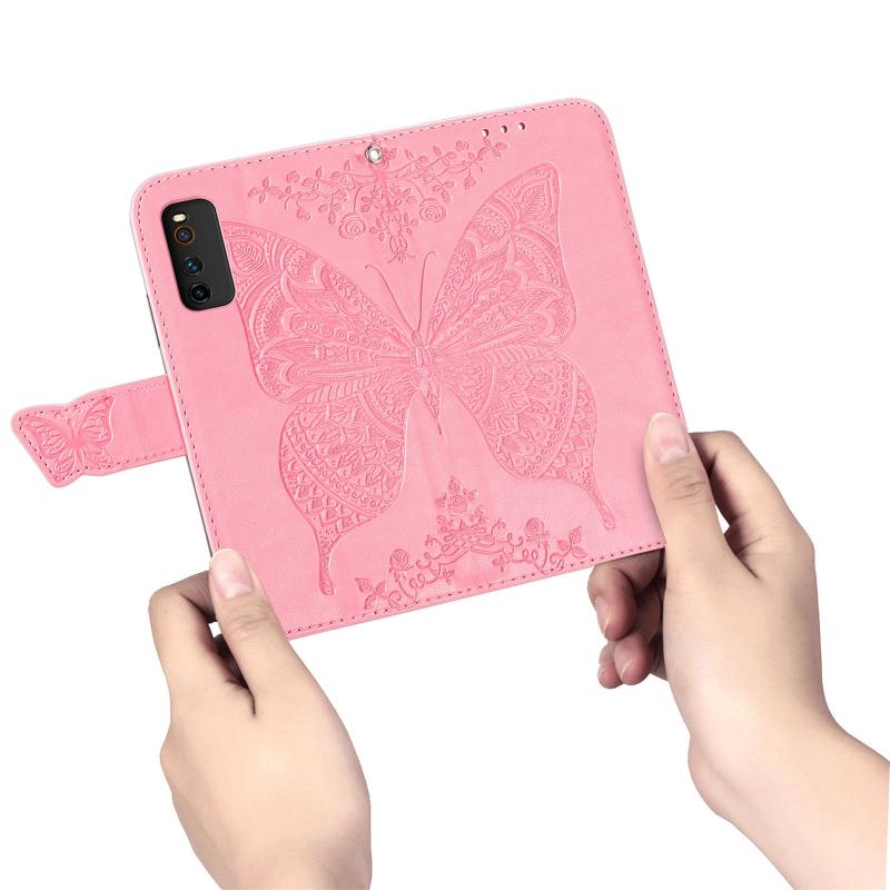 Butterfly Love Flowers Embossed Horizontal Flip Leather Case with Holder & Card Slots & Wallet & Lanyard For vivo IQOO Neo 3(Pink)