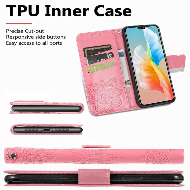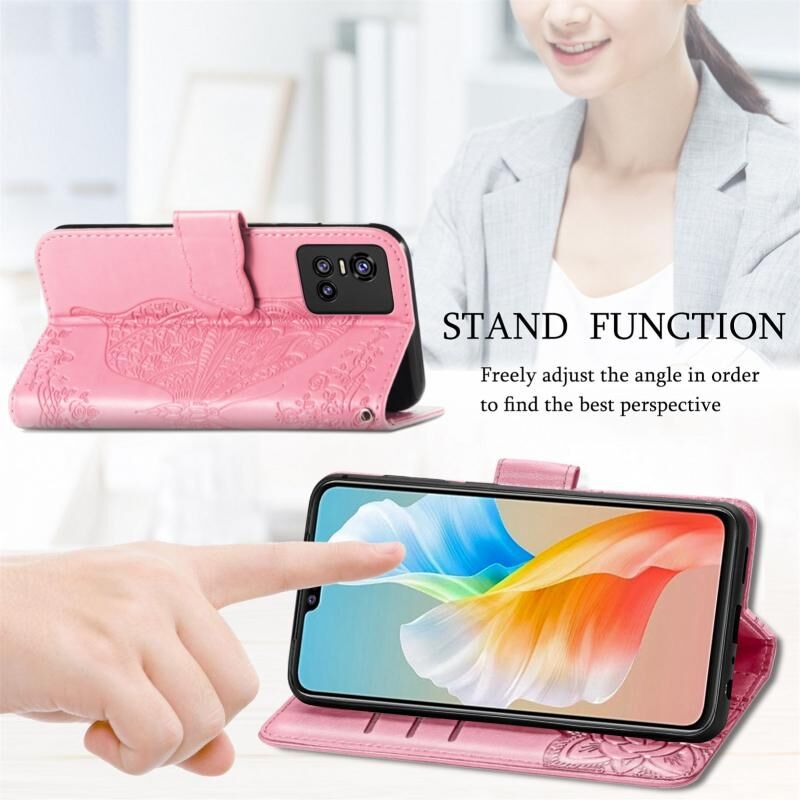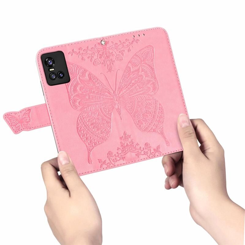 Θήκη δέρματος οριζόντιας αναδίπλωσης με ανάγλυφο σχέδιο πεταλούδας, λουλούδια, βάση στήριξης, θήκες για κάρτες, πορτοφόλι και λουρί για vivo S10 / S10 Pro (Μαύρο)