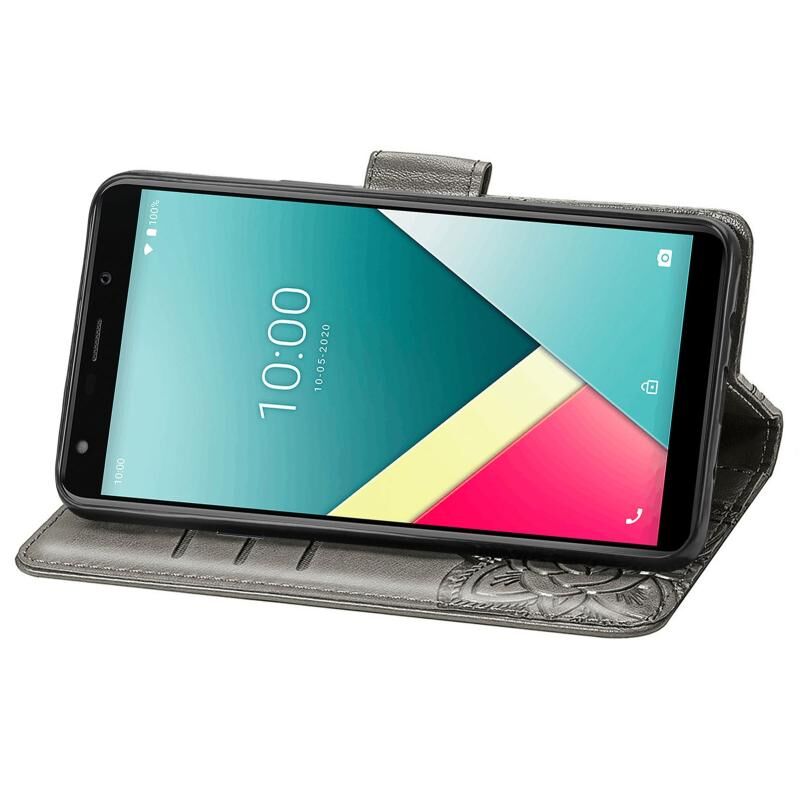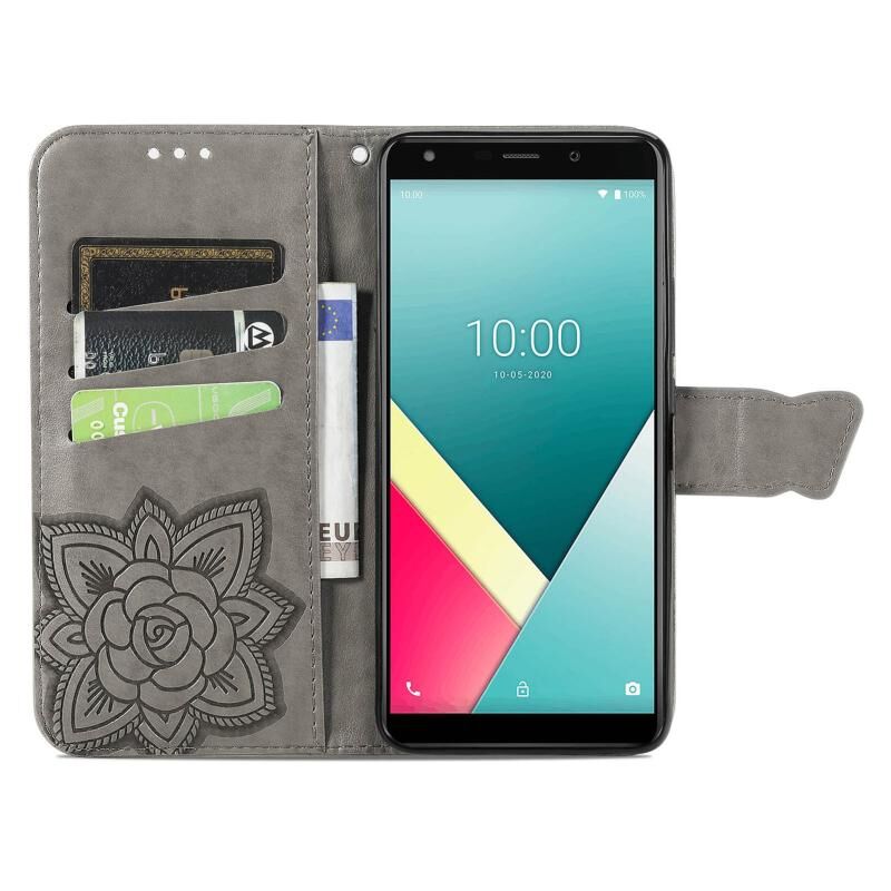 Θήκη δέρματος οριζόντιας αναδίπλωσης με σχέδιο πεταλούδας, λουλούδια, ανάγλυφο, με βάση & υποδοχές καρτών & πορτοφόλι & λουρί για Wiko Y61 (Μαύρο)