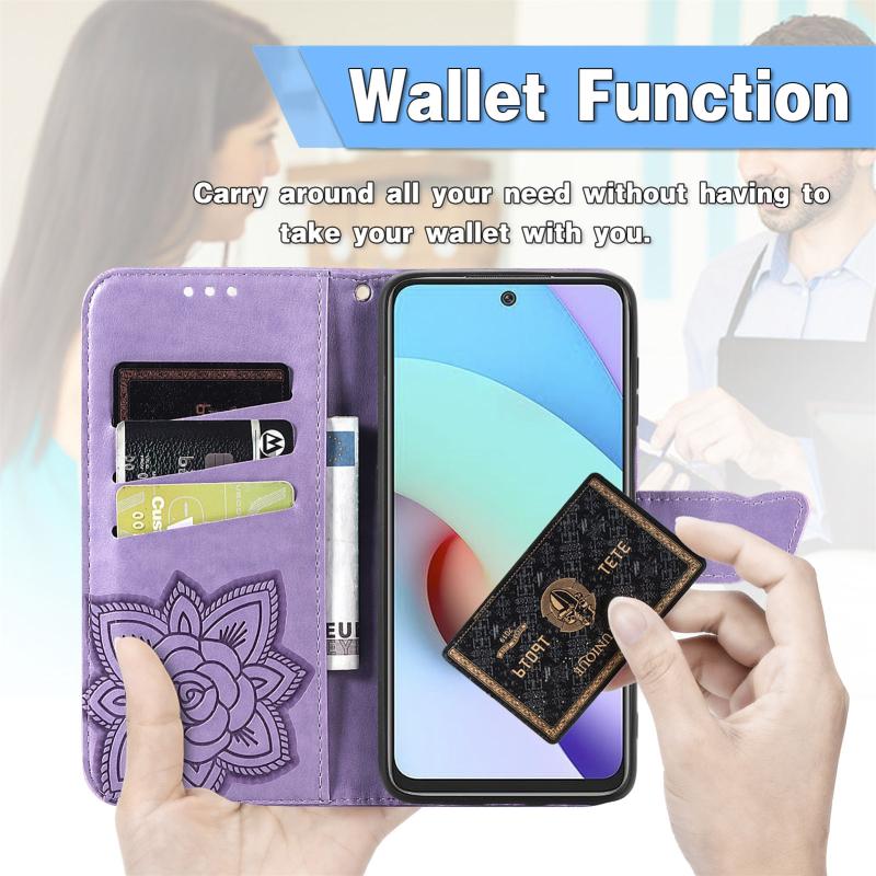 Butterfly Love Flowers Embossed Horizontal Flip Leather Case with Holder & Card Slots & Wallet & Lanyard For Xiaomi Redmi 10(Light Purple)
