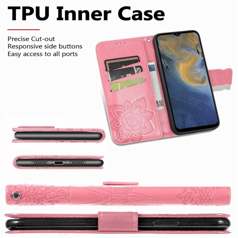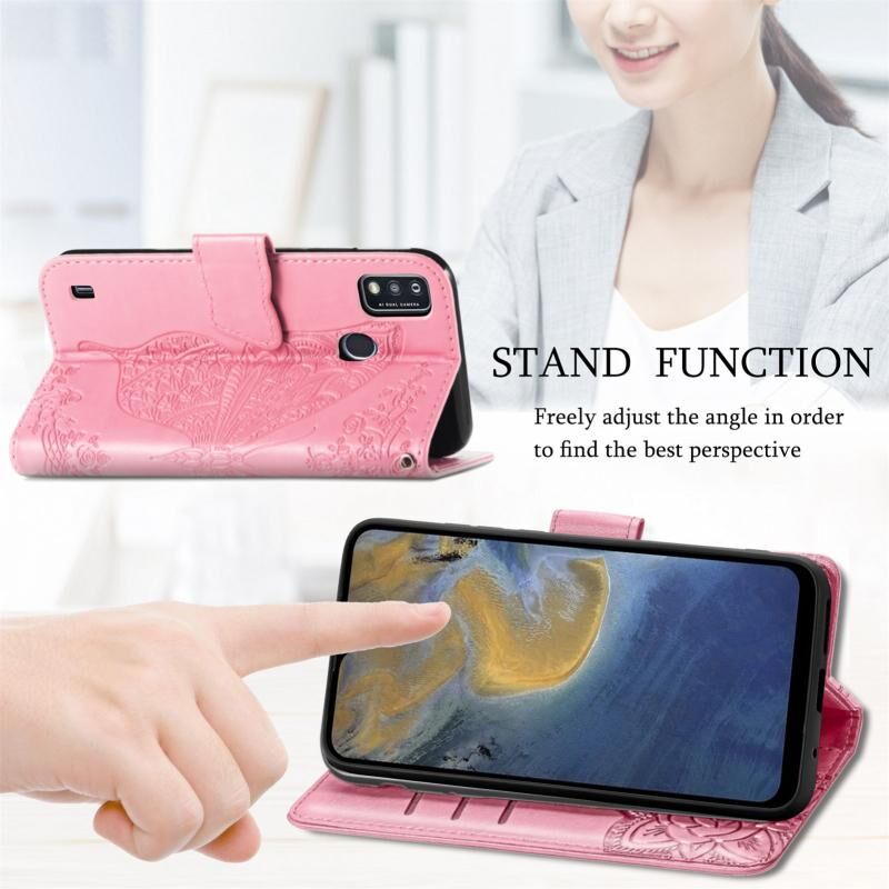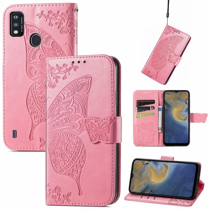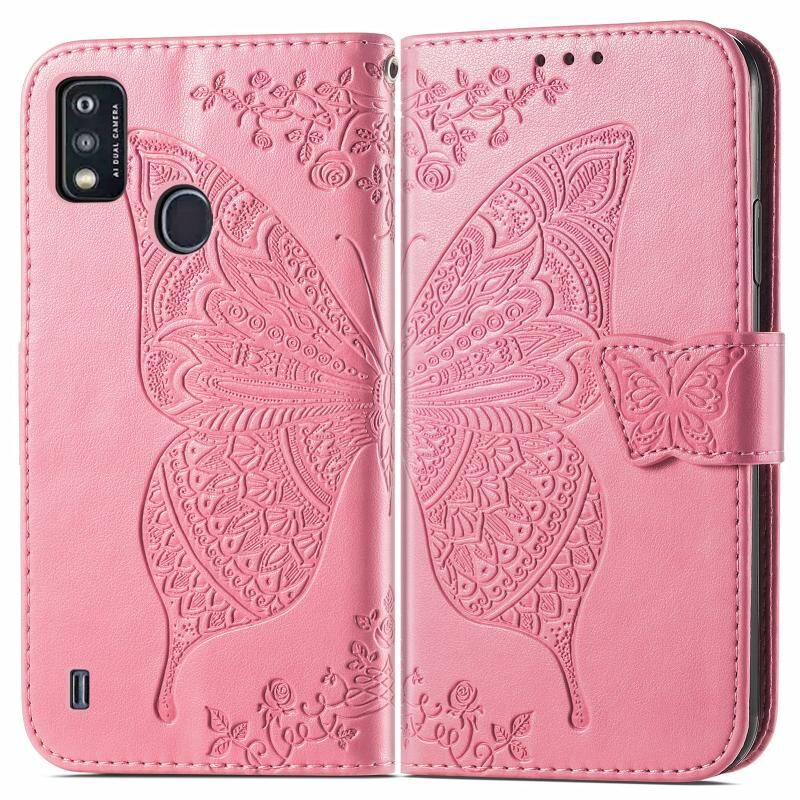 Butterfly Love Flowers Embossed Horizontal Flip Leather Case with Holder & Card Slots & Wallet & Lanyard For ZTE Blade A51(Pink)