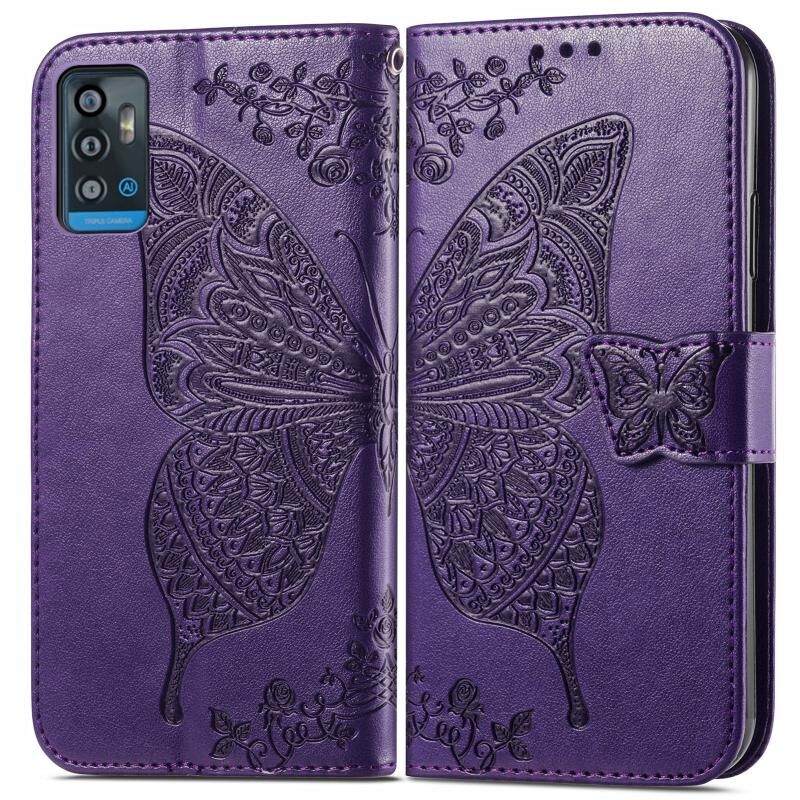 Butterfly Love Flowers Embossed Horizontal Flip Leather Case with Holder & Card Slots & Wallet & Lanyard For ZTE Blade A71(Dark Purple)