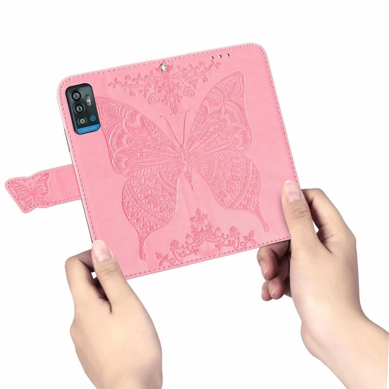 Butterfly Love Flowers Embossed Horizontal Flip Leather Case with Holder & Card Slots & Wallet & Lanyard For ZTE Blade A71(Pink)