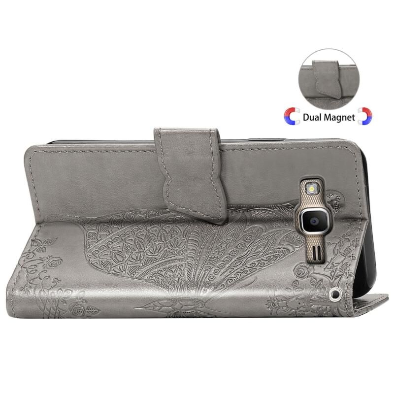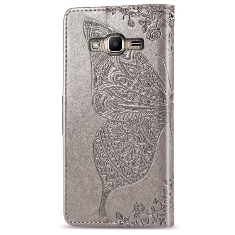 Πεταλούδα αγάπη λουλούδια ανάγλυφη οριζόντια Flip δερμάτινη θήκη για Galaxy J2 Prime / G530, με θήκη & υποδοχές για κάρτες & πορτοφόλι & κορδόνι (Gary)