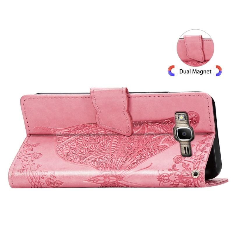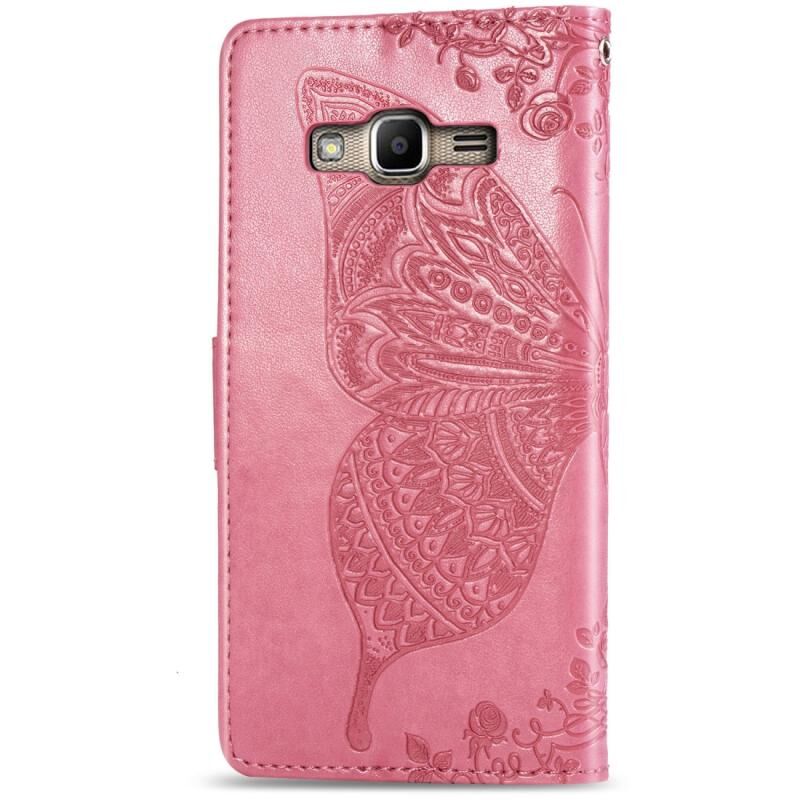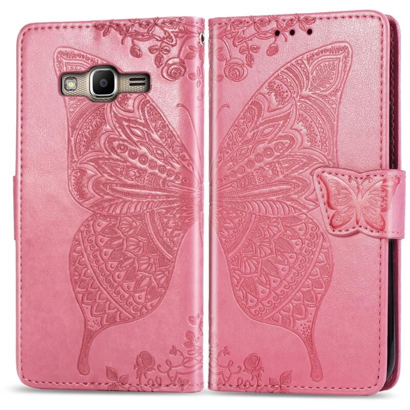 Πεταλούδα αγάπη λουλούδια ανάγλυφη οριζόντια Flip δερμάτινη θήκη για Galaxy J2 Prime / G530, με θήκη & υποδοχές για κάρτες & πορτοφόλι & κορδόνι (ροζ)