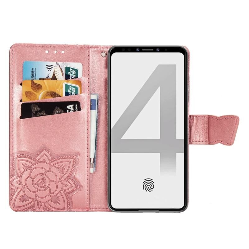 Θήκη δέρματος οριζόντιας αναδίπλωσης για Google Pixel 4 XL με σχέδιο πεταλούδας, λουλουδιών και ανάγλυφο, με βάση, θήκες καρτών, πορτοφόλι και λουρί (Μπλε)