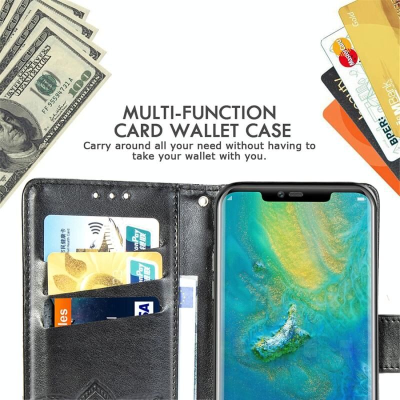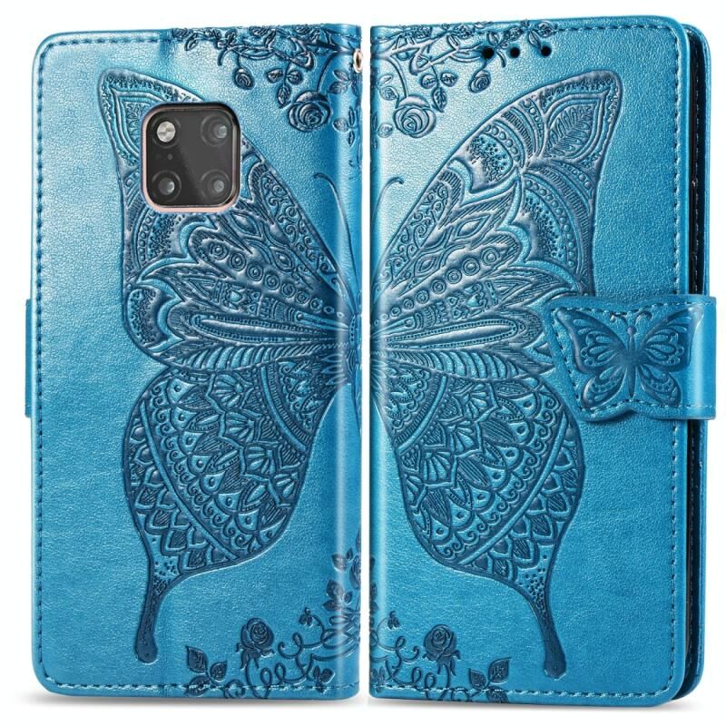 Πεταλούδα αγάπη λουλούδια ανάγλυφη οριζόντια Flip δερμάτινη θήκη για Huawei Mate 20 Pro, με θήκη & υποδοχές καρτών & πορτοφόλι (μπλε)