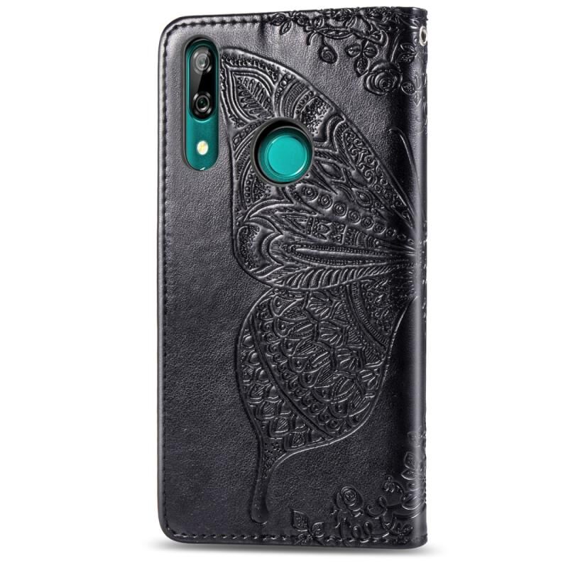 Πεταλούδα αγάπη λουλούδια ανάγλυφη οριζόντια Flip δερμάτινη θήκη για Huawei P Smart Z με κάτοχο & υποδοχές καρτών & πορτοφόλι & κορδόνι (μαύρο)