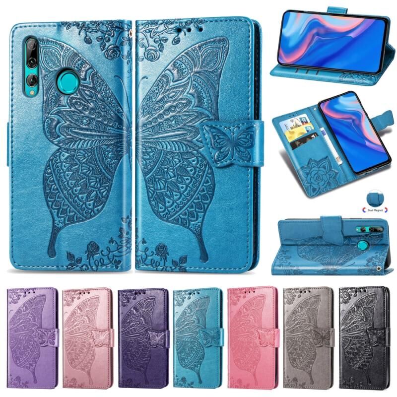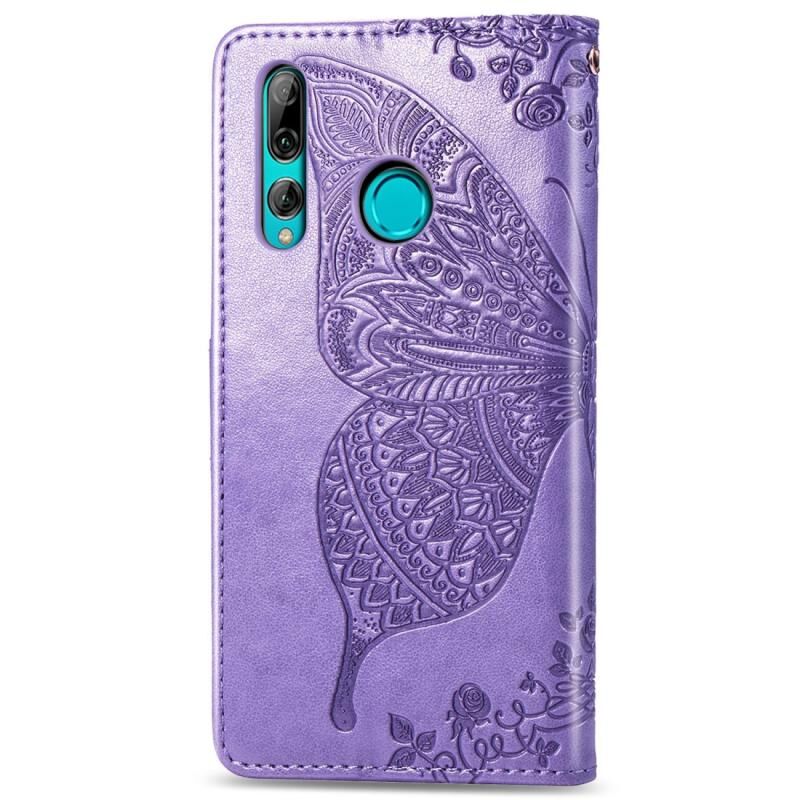 Πεταλούδα αγάπη λουλούδια ανάγλυφη οριζόντια Flip δερμάτινη θήκη για Huawei Y9 Prime (2019), με κάτοχο & υποδοχές καρτών & πορτοφόλι & κορδόνι (ανοιχτό μοβ)