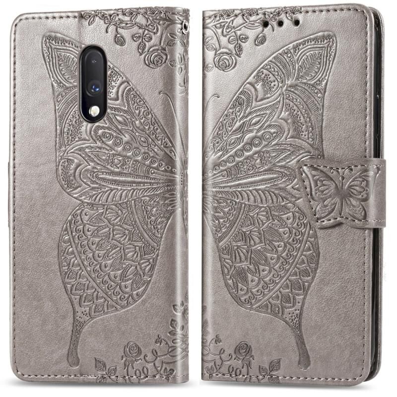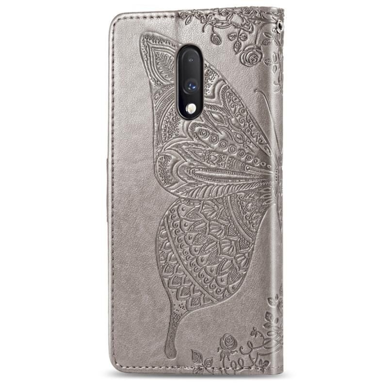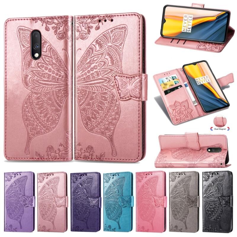 Θήκη δέρματος οριζόντιας αναδίπλωσης για One Plus 7 με σχέδιο πεταλούδας, λουλουδιών και ανάγλυφο, με βάση στήριξης, θήκες για κάρτες, πορτοφόλι και κορδόνι (Μαύρο)