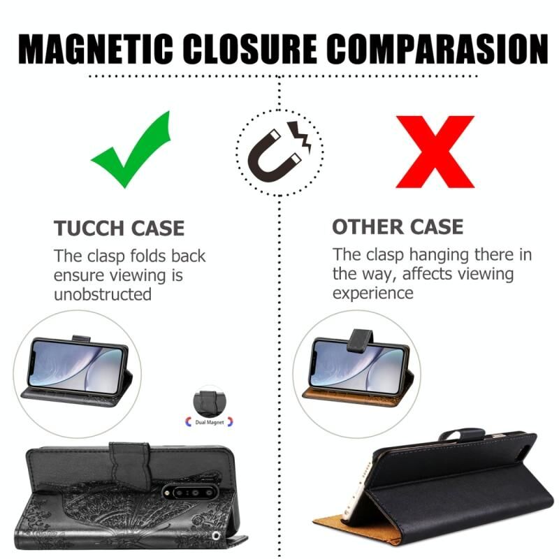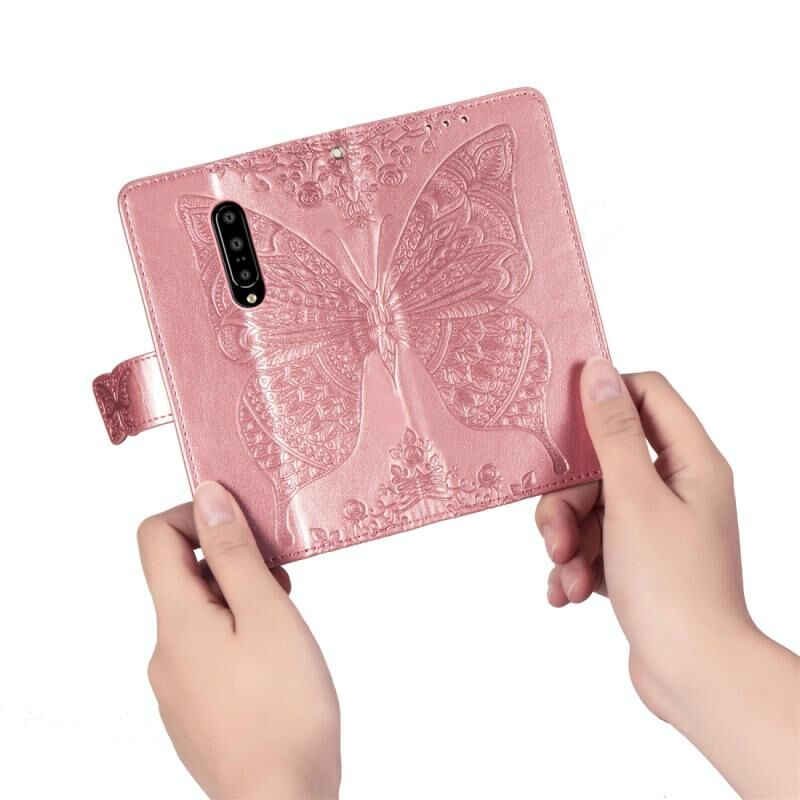 Πεταλούδα αγάπη λουλούδια ανάγλυφη οριζόντια Flip δερμάτινη θήκη για OnePlus 7 Pro, με κάτοχο & υποδοχές για κάρτες & πορτοφόλι & Lanyard (Rose χρυσό)
