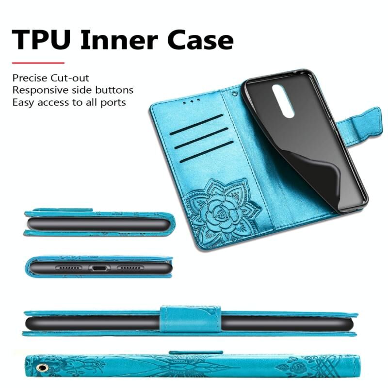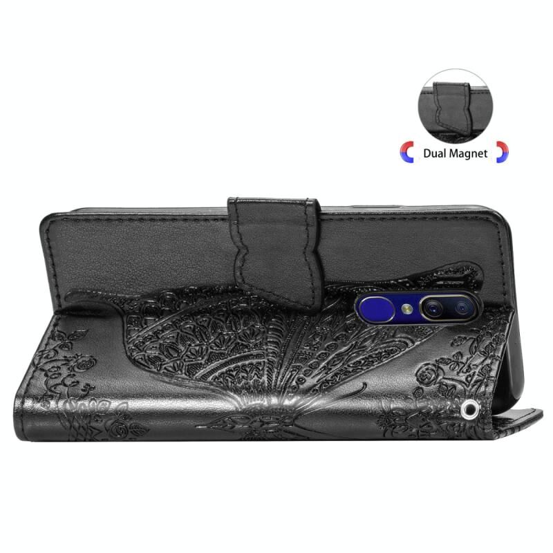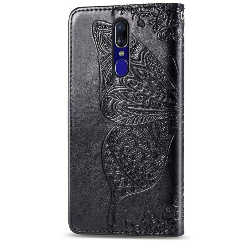Πεταλούδα αγάπη λουλούδια ανάγλυφη οριζόντια Flip δερμάτινη θήκη για OPPO F11, με θήκη & υποδοχές για κάρτες & πορτοφόλι & κορδόνι (Μαύρο)