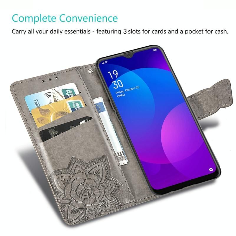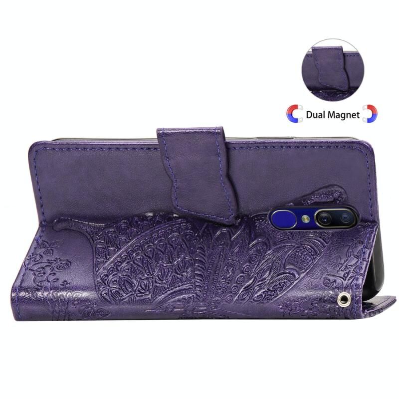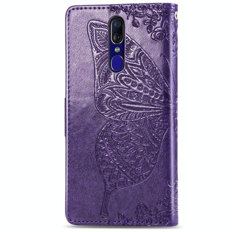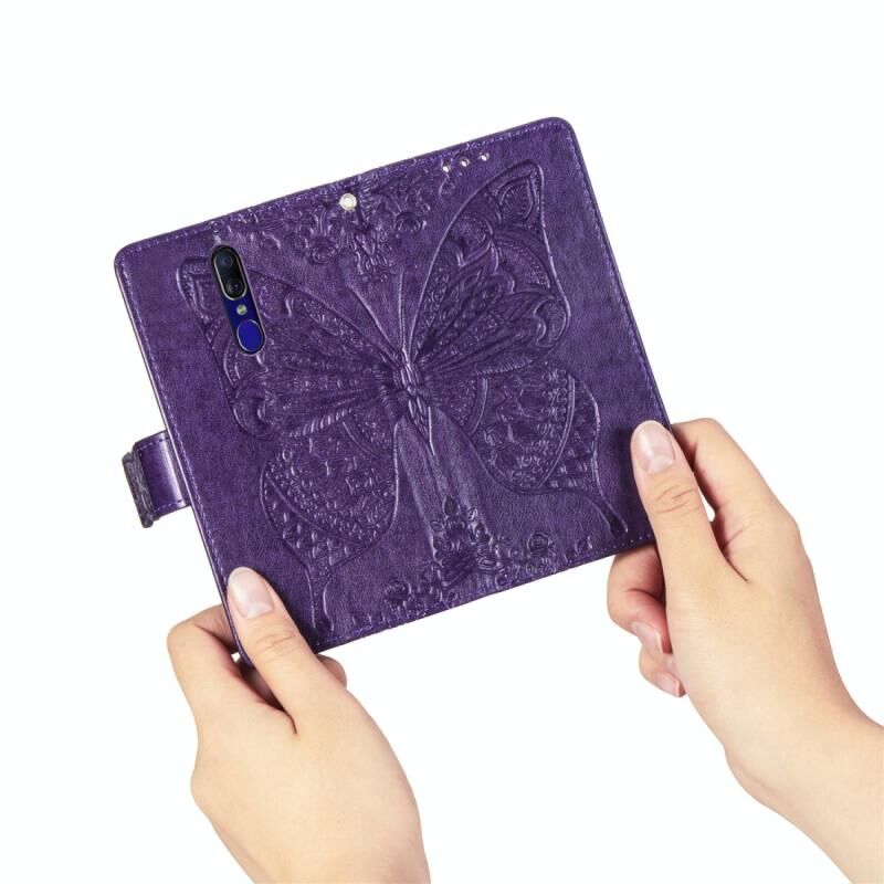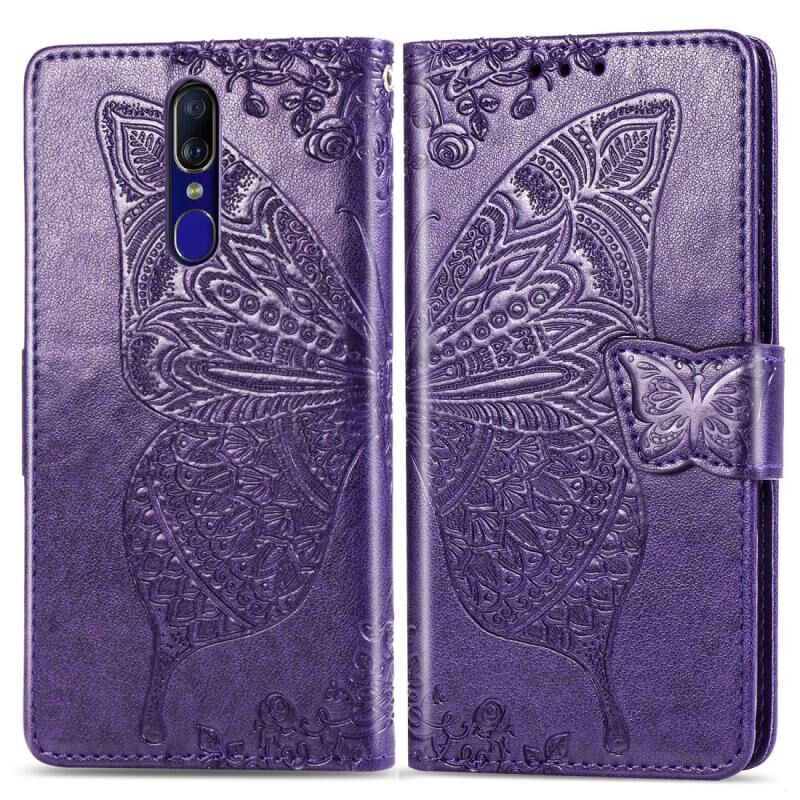 Πεταλούδα αγάπη λουλούδια ανάγλυφη οριζόντια Flip δερμάτινη θήκη για OPPO F11, με κάτοχο & υποδοχές για κάρτες & πορτοφόλι & κορδόνι (Σκούρο μωβ)