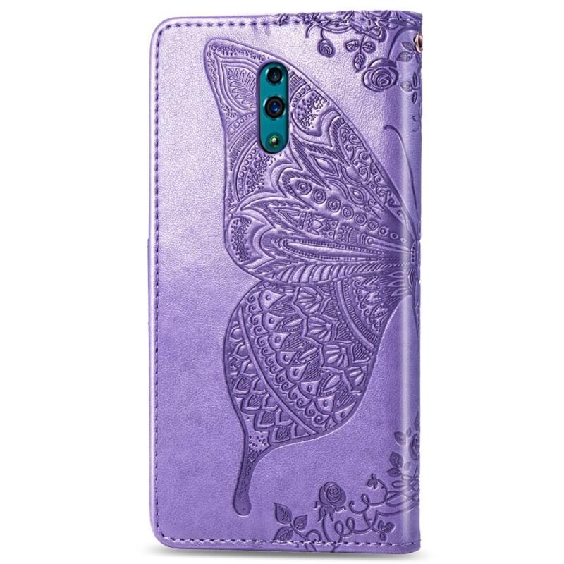 Πεταλούδα αγάπη λουλούδια ανάγλυφη οριζόντια Flip δερμάτινη θήκη για OPPO Reno, με κάτοχο & υποδοχές για κάρτες & πορτοφόλι & Lanyard (ανοιχτό μωβ)