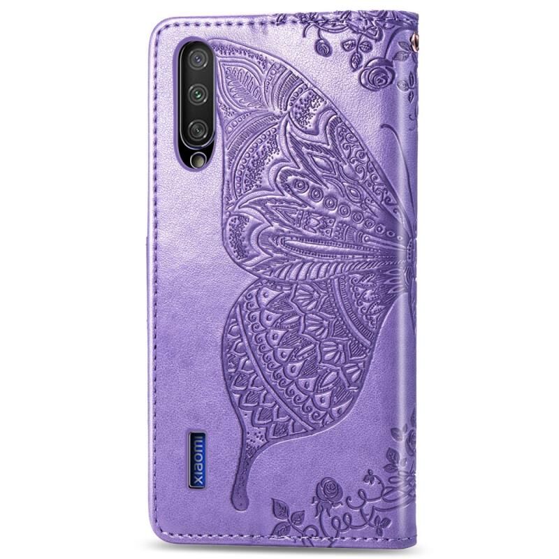 Θήκη δέρματος οριζόντιας αναδίπλωσης για Xiaomi CC9 με σχέδιο πεταλούδας, λουλούδια, ανάγλυφο, με βάση στήριξης, θήκες για κάρτες, πορτοφόλι και λουρί (Γκρι)