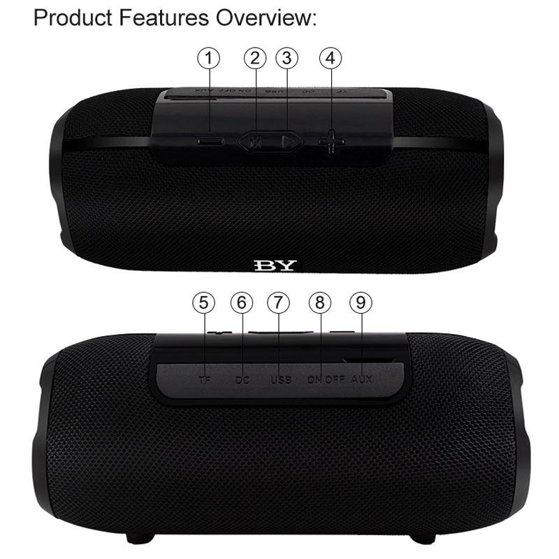 BY Portable Bluetooth Speaker Waterproof Wireless Loudspeaker 3D Stereo Music Surround Sound System Outdoor Speakers Support TF AUX(Black)