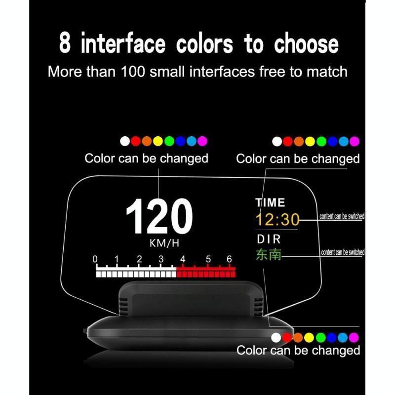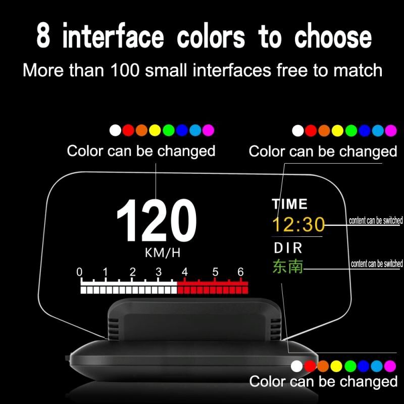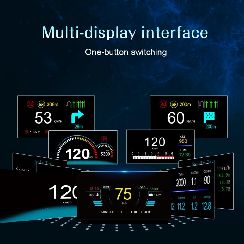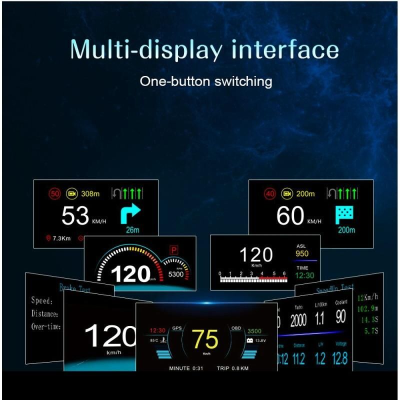 4. OBD mode display information: vehicle speed, water temperature, voltage, fuel consumption, speed, single mileage, total mileage, travel time, direction of travel, number of stars searched, altitude, time, intake pressure, oil temperature, air-fuel ratio, turbo pressure, intake pressure, acceleration test, brake test, read data stream
