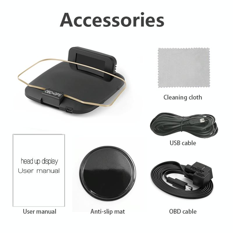 8. Packing list: host x1, obd cable x1, car charger cable x1, non-slip mat x1, manual x1, cleaning cloth x1