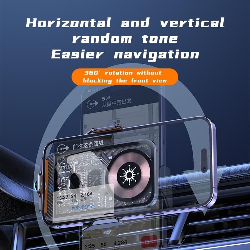 1. Έξυπνος σχεδιασμός αισθητήρα υπέρυθρων: Αυτόματος σχεδιασμός ανοίγματος και σύσφιξης για λειτουργία με το ένα χέρι, κάνοντας τα πάντα ευκολότερα και ασφαλέστερα. Απλά τοποθετήστε το τηλέφωνο μέσα στην υποδοχή και το κλιπ θα κλείσει και θα παρέχει σταθερή και ασφαλή συγκράτηση. Αγγίξτε το κουμπί γρήγορης απελευθέρωσης σε οποιαδήποτε πλευρά και η υποδοχή θα περιστραφεί για να ισοπεδώσει την οθόνη. Όταν το τηλέφωνό σας φορτιστεί πλήρως, ο ασύρματος φορτιστής αυτοκινήτου θα απενεργοποιηθεί αυτόματα και θα διατηρήσει τη διάρκεια ζωής της μπαταρίας του τηλεφώνου σας.