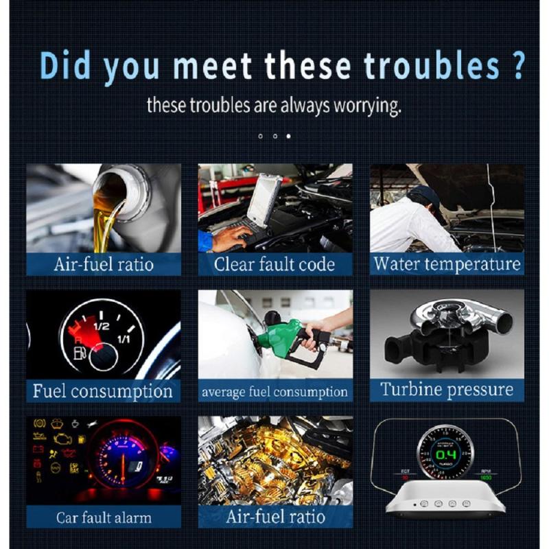 4. OBD mode display information: vehicle speed, speed, water temperature, voltage, mileage, driving time, fuel consumption, local time, oil temperature, driving direction, number of satellites, turbine pressure, air-fuel ratio, intake pressure, acceleration test, brake Test, 100 kilometers acceleration test, read the entire vehicle data stream, alarm: overspeed alarm, speed alarm, fatigue driving reminder, water temperature too high, voltage too low, engine failure alarm