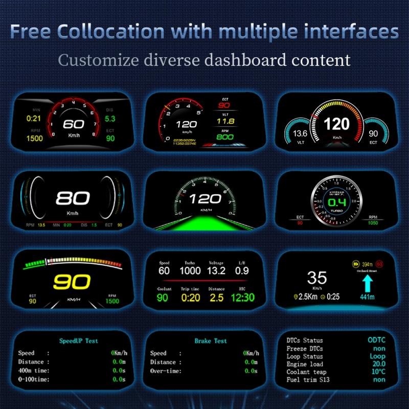 5. GPS mode display information: vehicle speed, voltage, mileage, driving time, local time, altitude, driving direction, number of satellites, acceleration test, brake test, 100 kilometers acceleration test, alarm: overspeed alarm, low voltage alarm features : Stereoscopic imaging uses semi-transparent and semi-reflective lenses to suspend the three-dimensional display of information in the air; no reflection, zero ghosting, and clearer display during the day